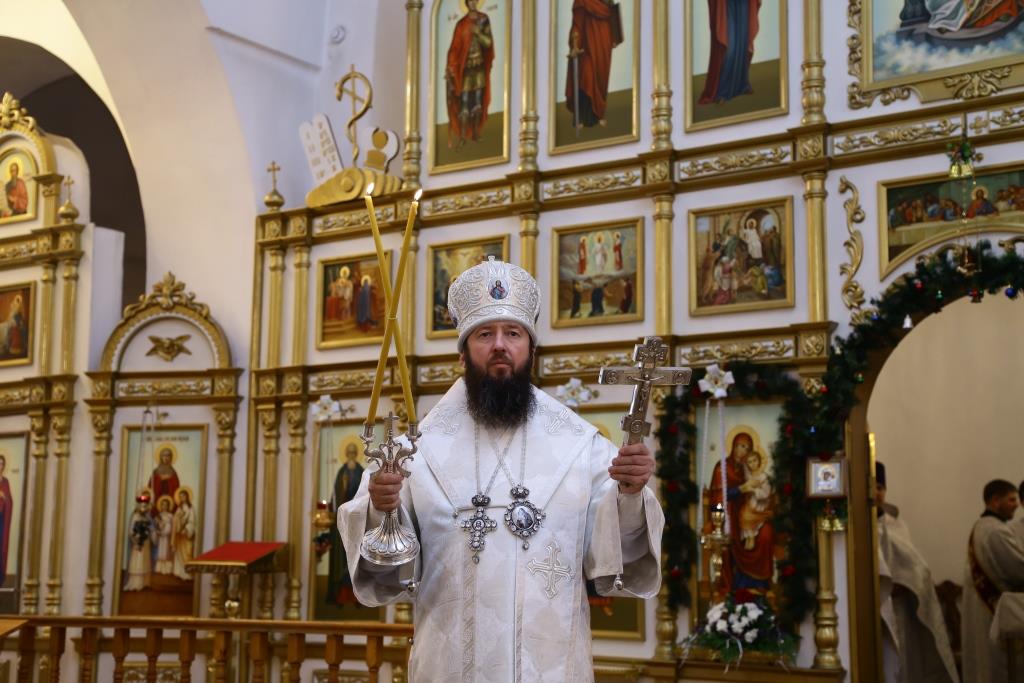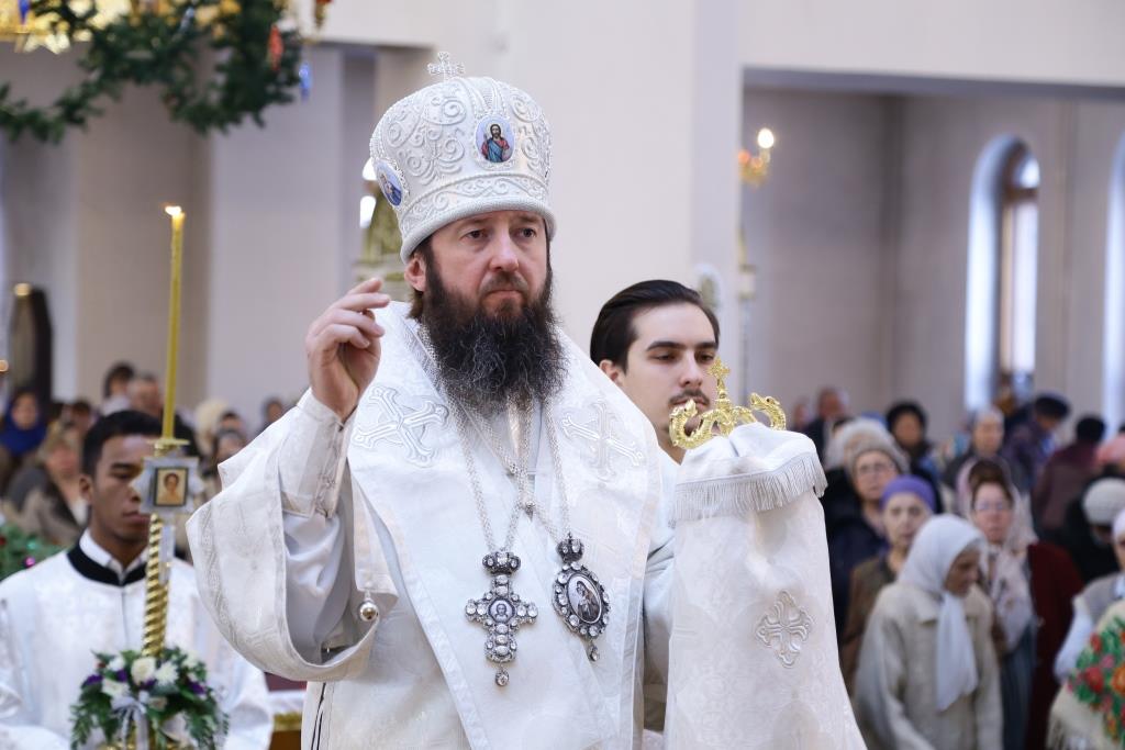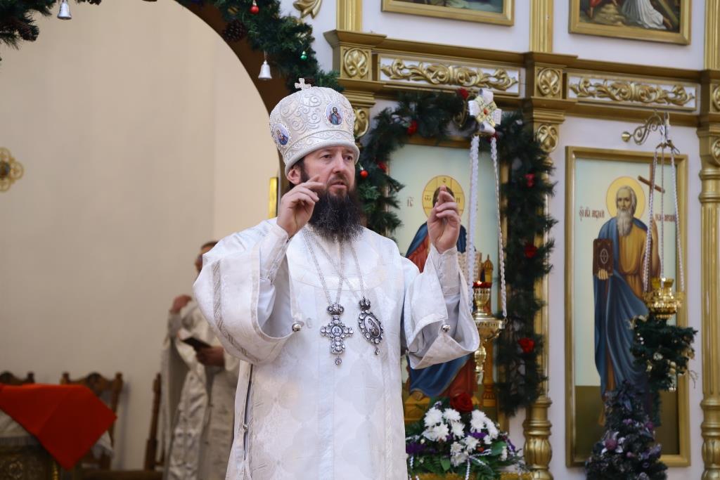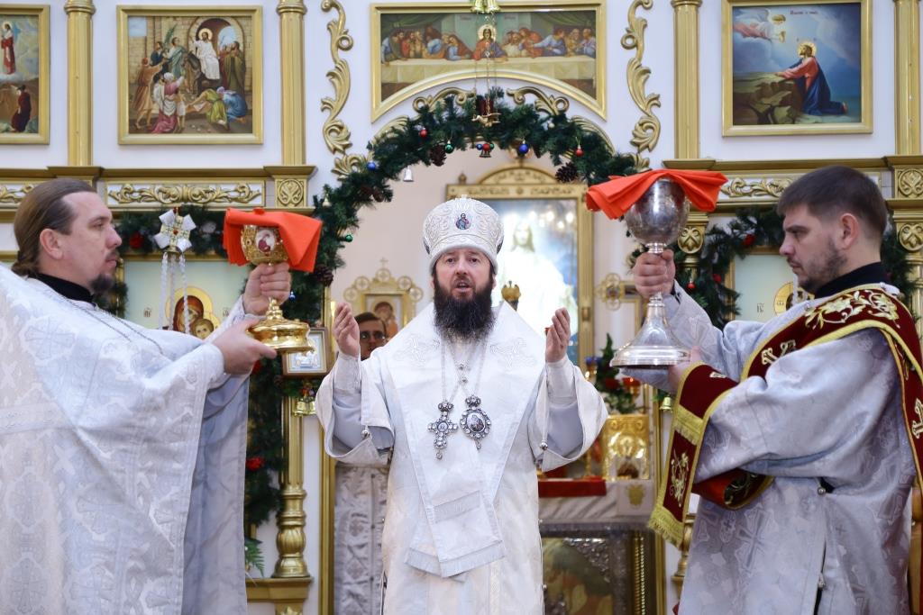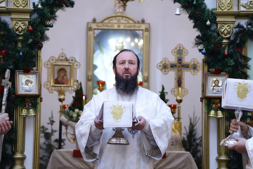 Перед причастием мирян ключарь кафедрального собора огласил всем собравшимся Рождественское послание Главы Православной Церкви Казахстана митрополита Астанайского и Казахстанского Александра.