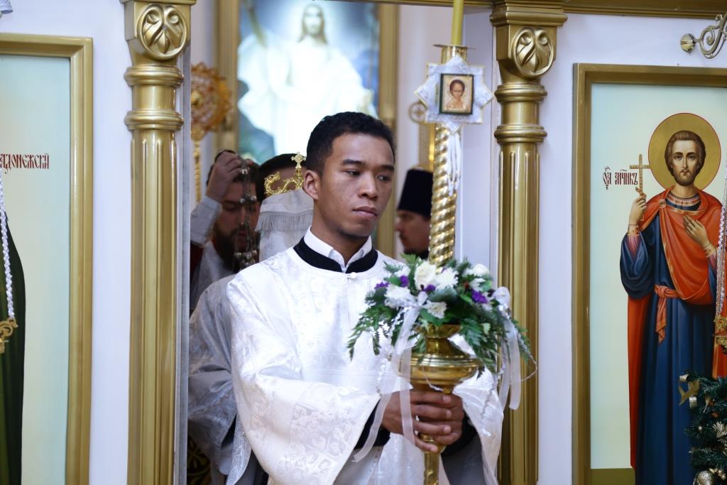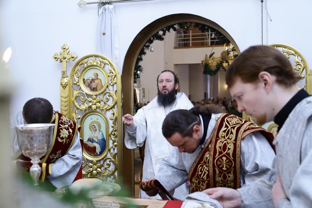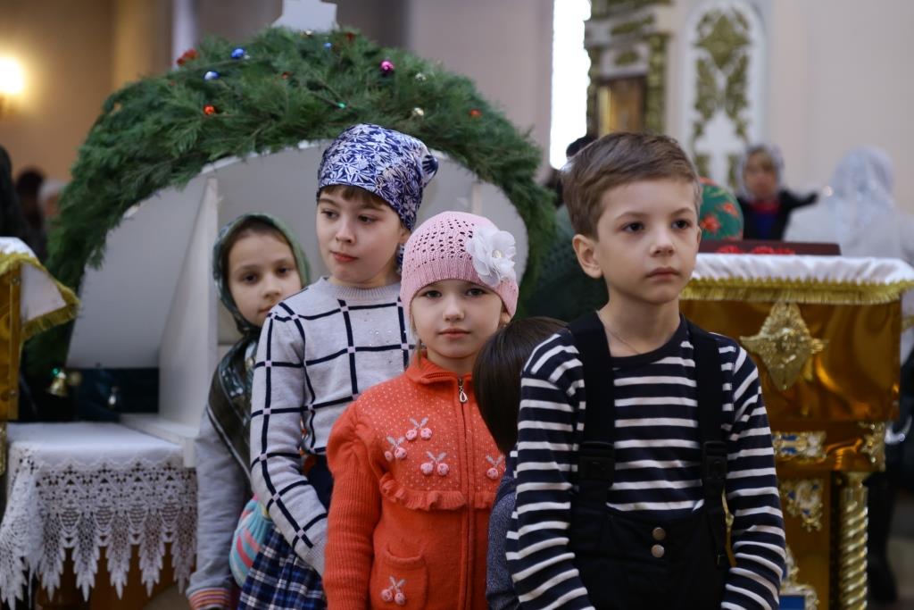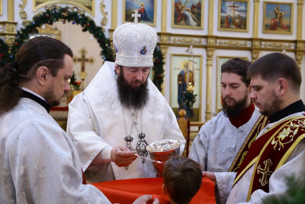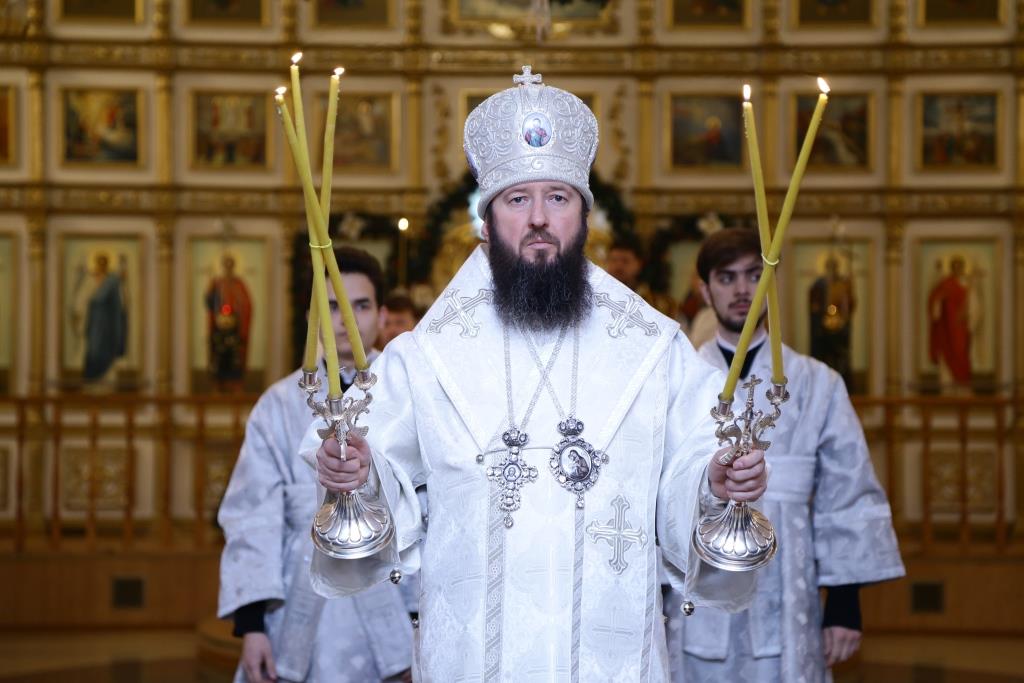 Перед причастием мирян ключарь кафедрального собора огласил всем собравшимся Рождественское послание Главы Православной Церкви Казахстана митрополита Астанайского и Казахстанского Александра.