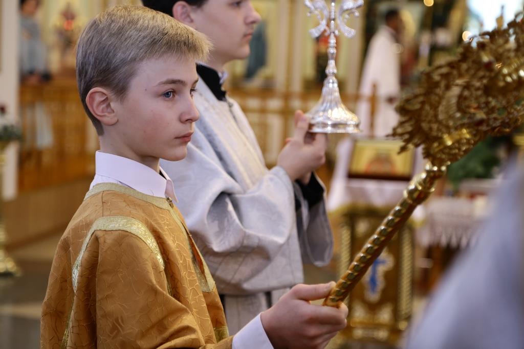 Праздничные песнопения исполнял хор кафедрального собора под управлением регента В. Фёдоровой.