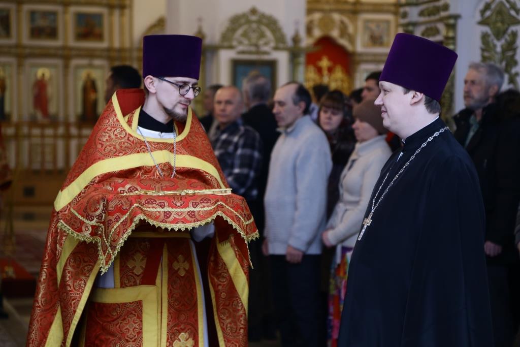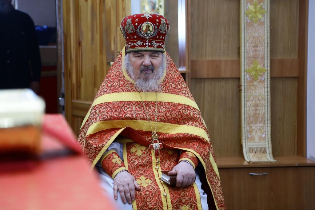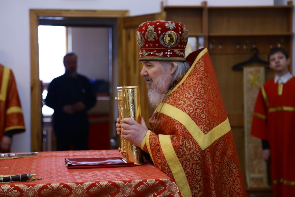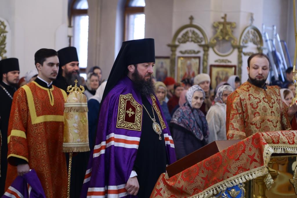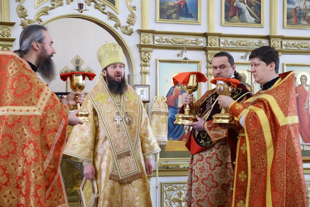 Архипастырю сослужили: духовник епархии архимандрит Спиридон (Теплухин), ключарь собора иеромонах Никодим (Авдеев), клирик Покровского храма иерей Роман Подрезов, заведующий канцелярией епархиального управления иерей Константин Дьяков, протодиакон Андрей Дудник, диакон Алексий Горбунов.