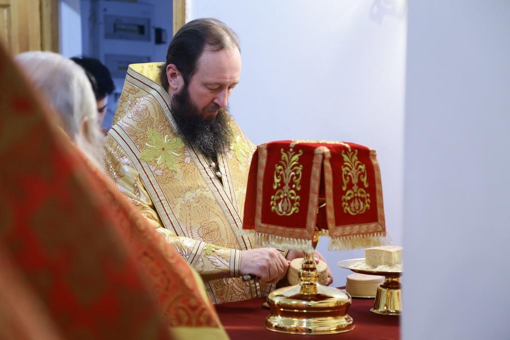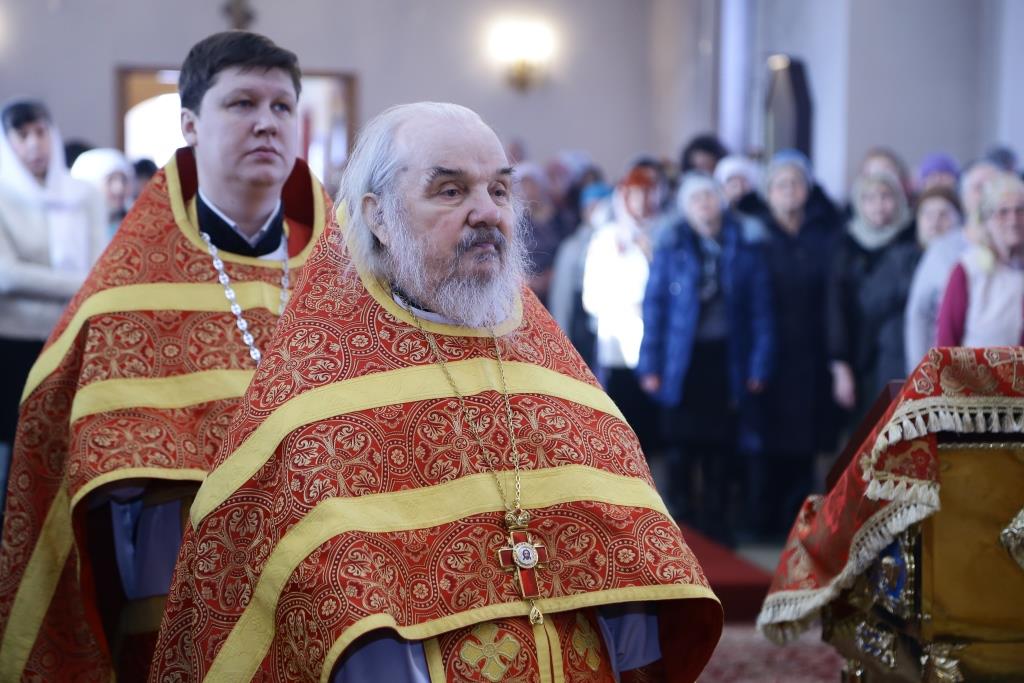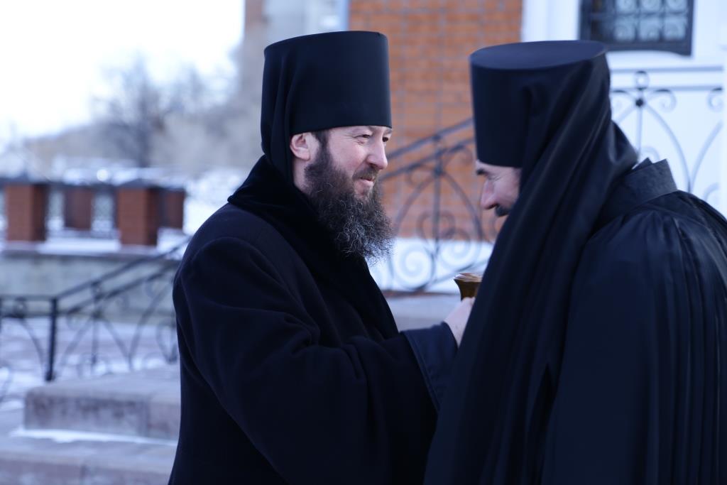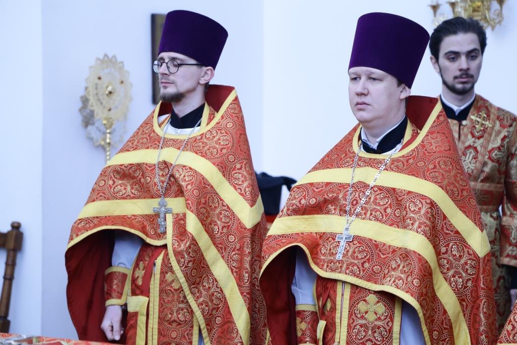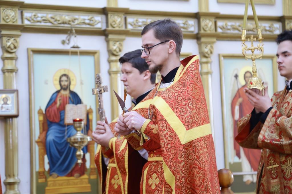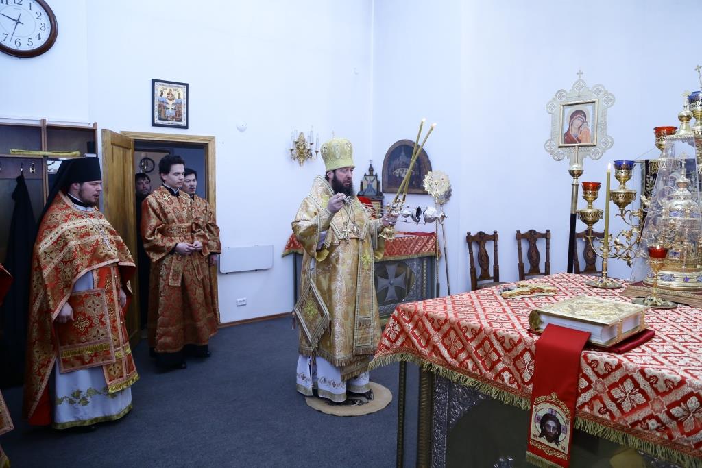 Архипастырю сослужили: духовник епархии архимандрит Спиридон (Теплухин), ключарь собора иеромонах Никодим (Авдеев), клирик Покровского храма иерей Роман Подрезов, заведующий канцелярией епархиального управления иерей Константин Дьяков, протодиакон Андрей Дудник, диакон Алексий Горбунов.