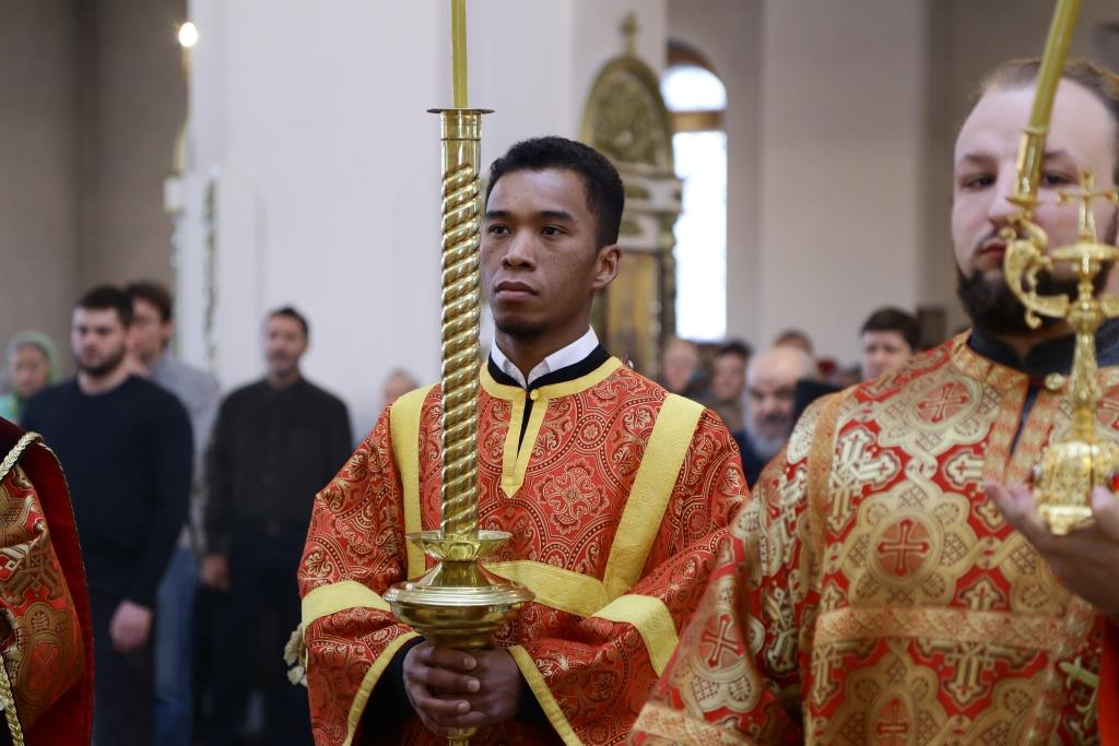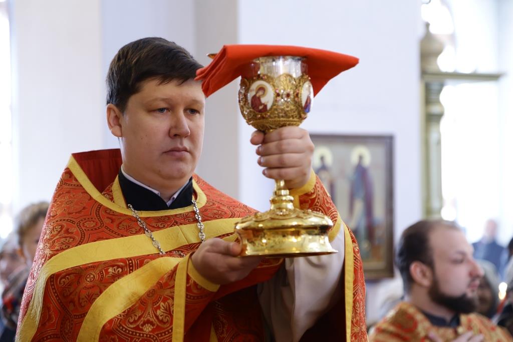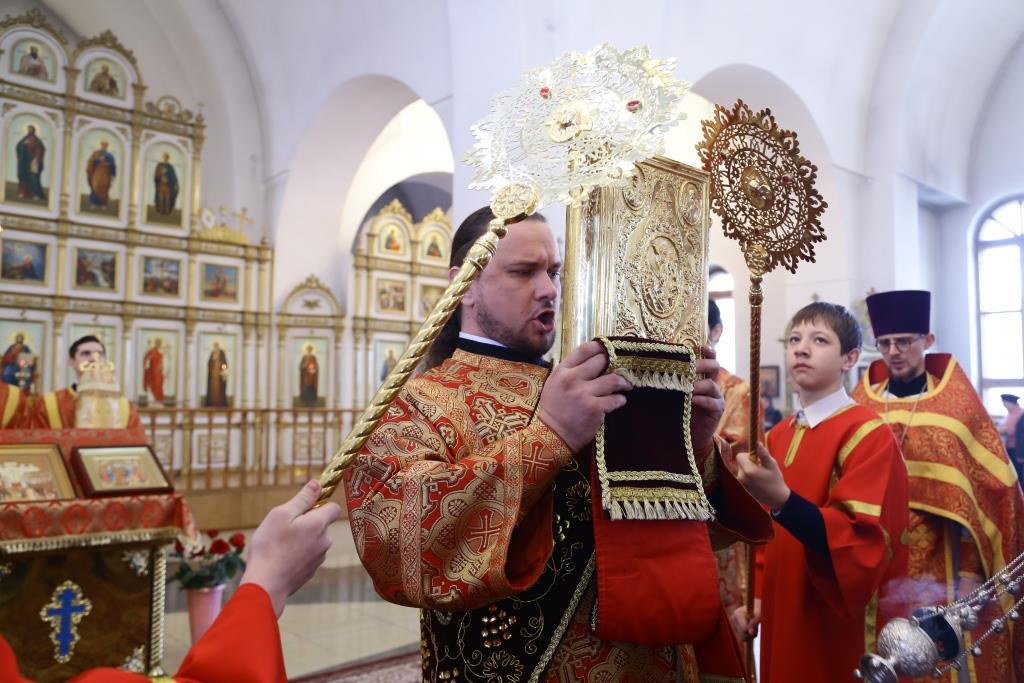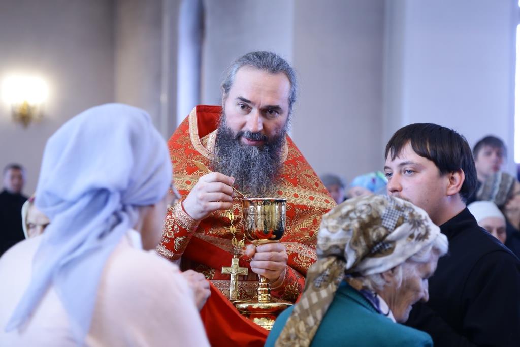 Перед причастием мирян ключарь кафедрального собора огласил Послание Святейшего Патриарха Кирилла и Освященного Архиерейского Собора всем верным чадам Русской Православной Церкви.