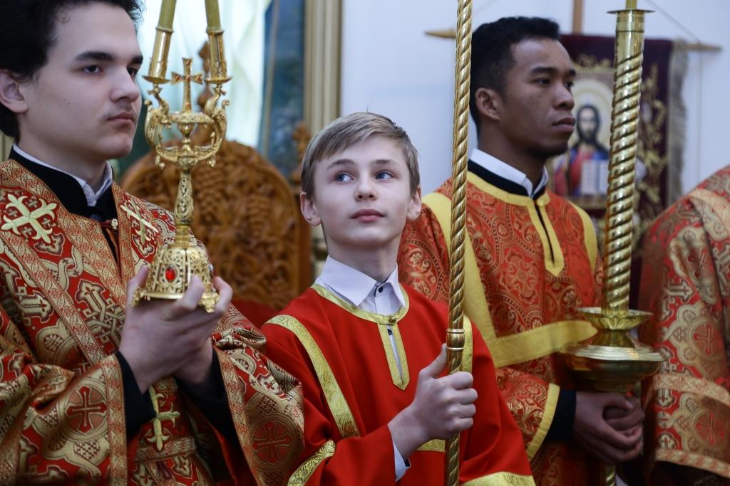 Песнопения Божественной Литургии исполнял хор кафедрального собора под управлением регента В. Фёдоровой.