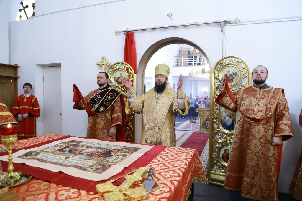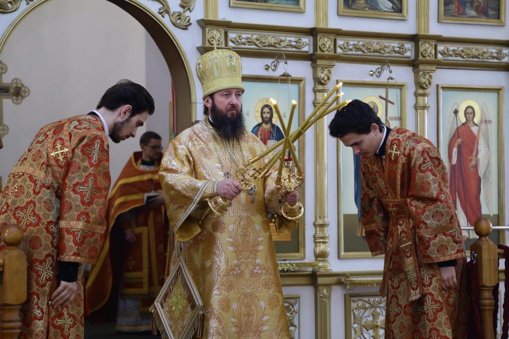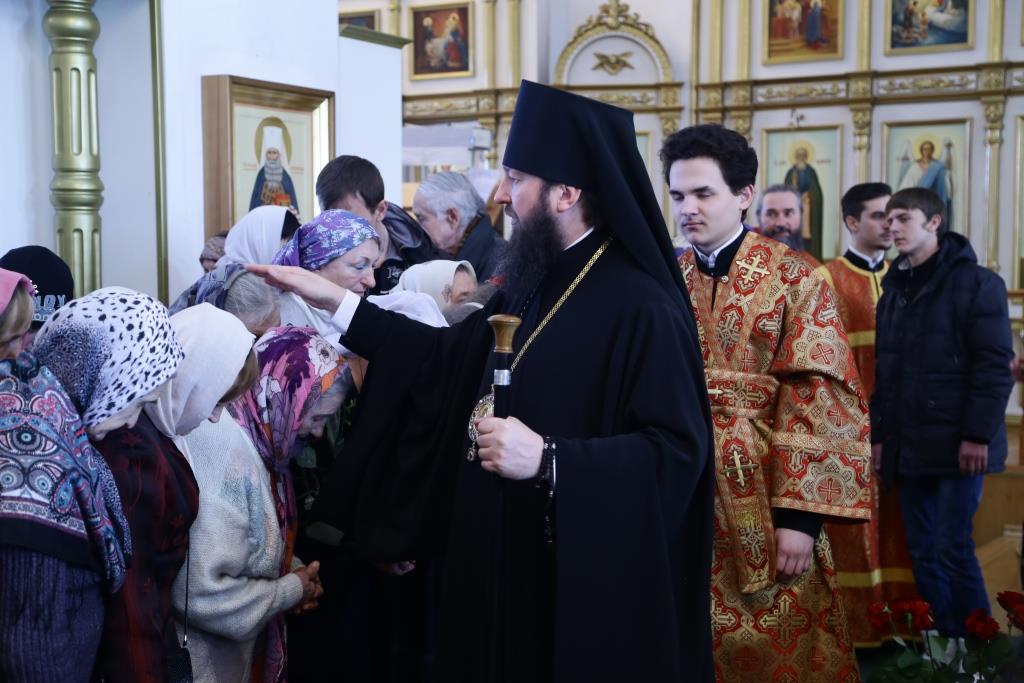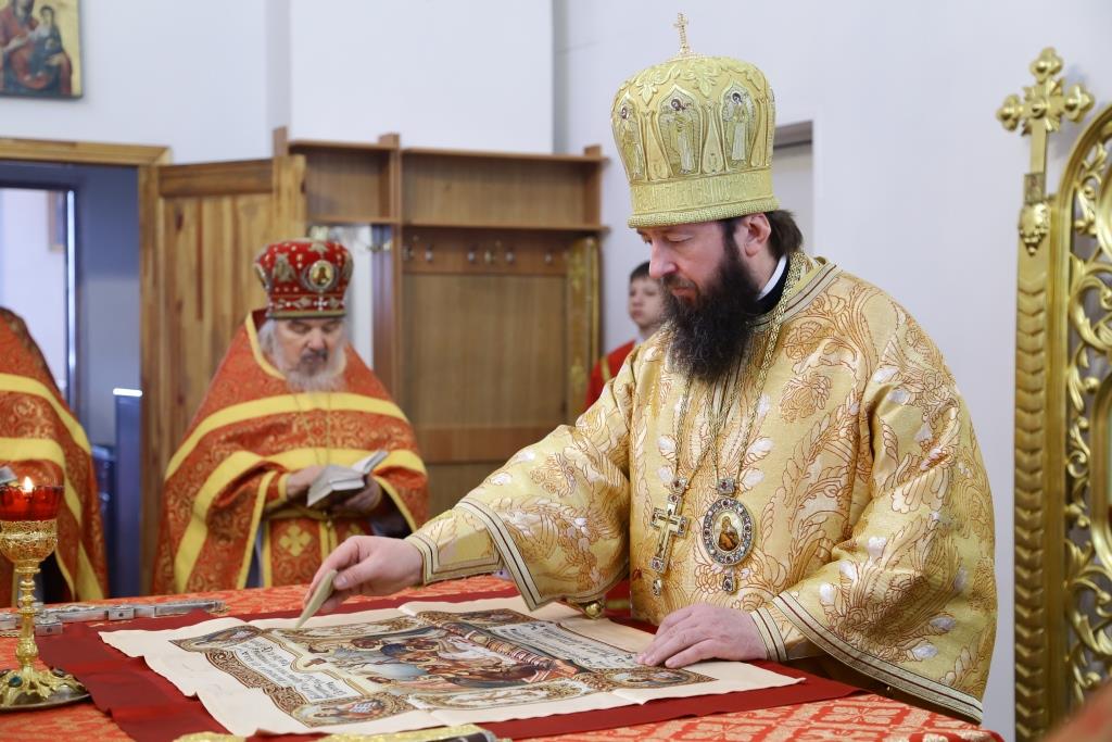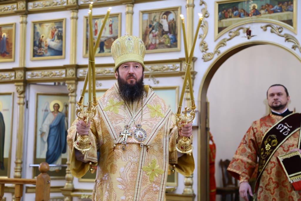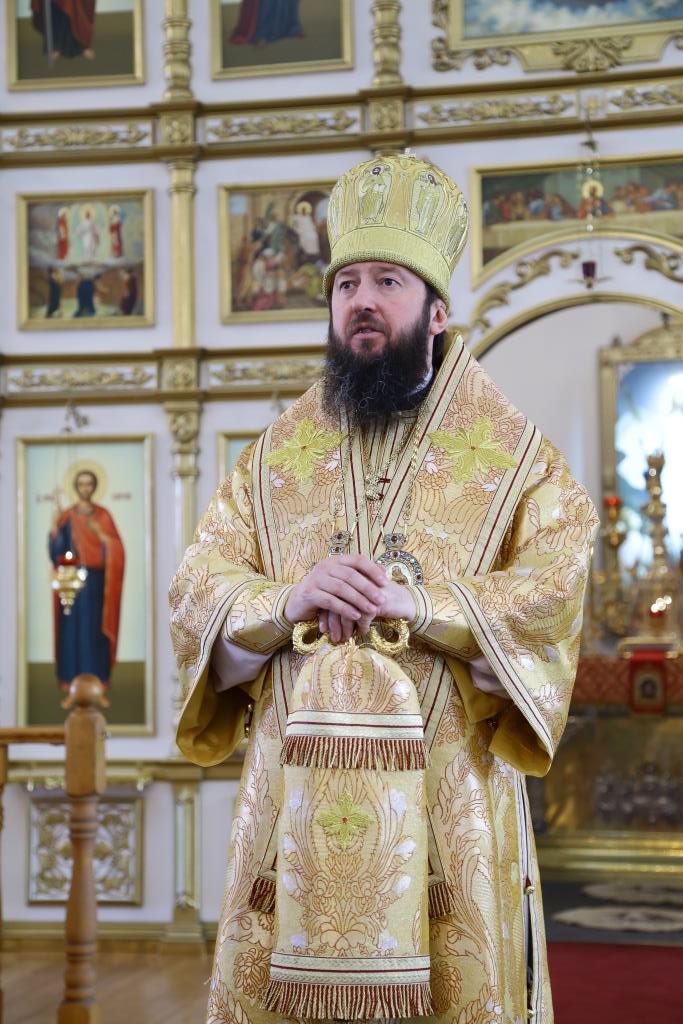 После отпуста Божественной Литургии Преосвященнейший Владыка поздравил духовенство и прихожан с праздником и обратился ко всем молящимся со словами Архипастырской проповеди.
