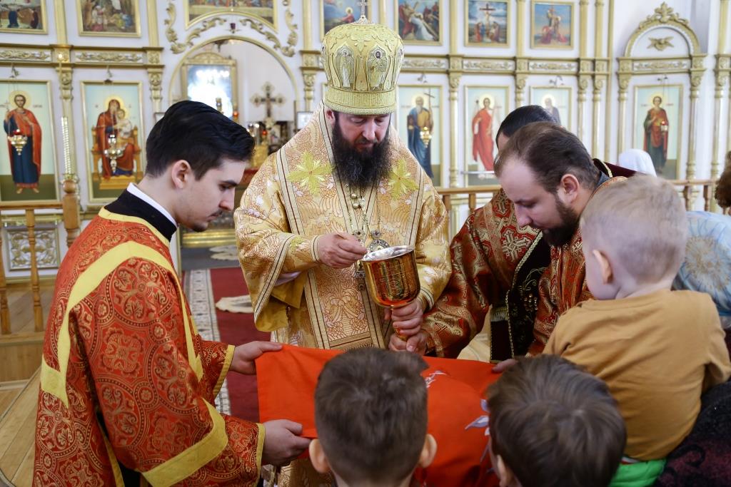 Управляющий Усть-Каменогорской и Семипалатинской епархии Преосвященнейший епископ Амфилохий возглавил служение Божественной Литургии святителя Иоанна Златоуста в кафедральном соборе апостола Андрея Первозванного города Усть-Каменогорска.
