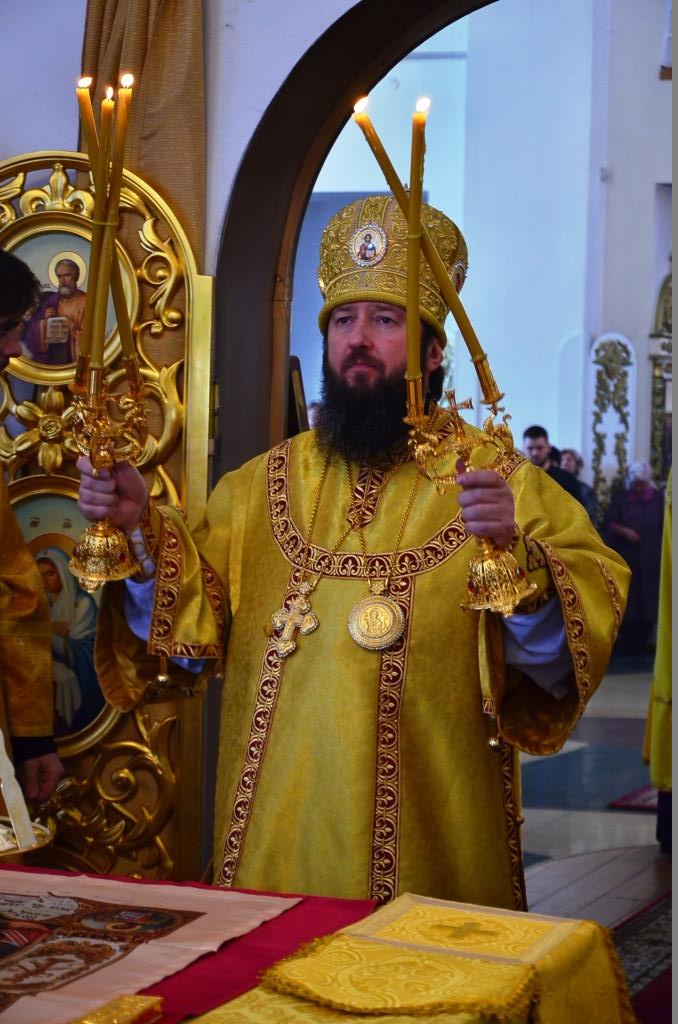 После отпуста Божественной Литургии Преосвященнейший Владыка поздравил духовенство и прихожан с воскресным днем и обратился ко всем молящимся со словами Архипастырской проповеди.