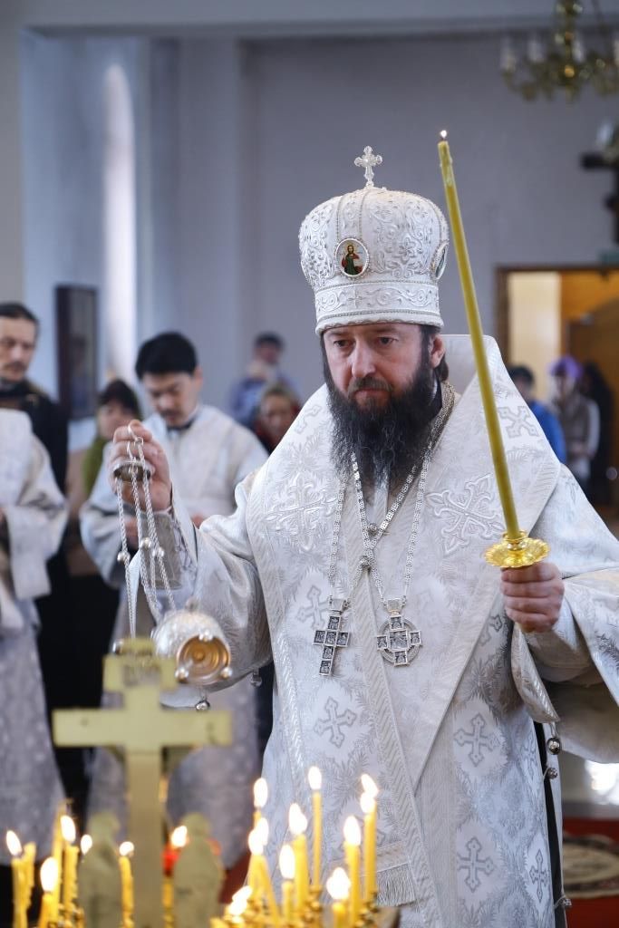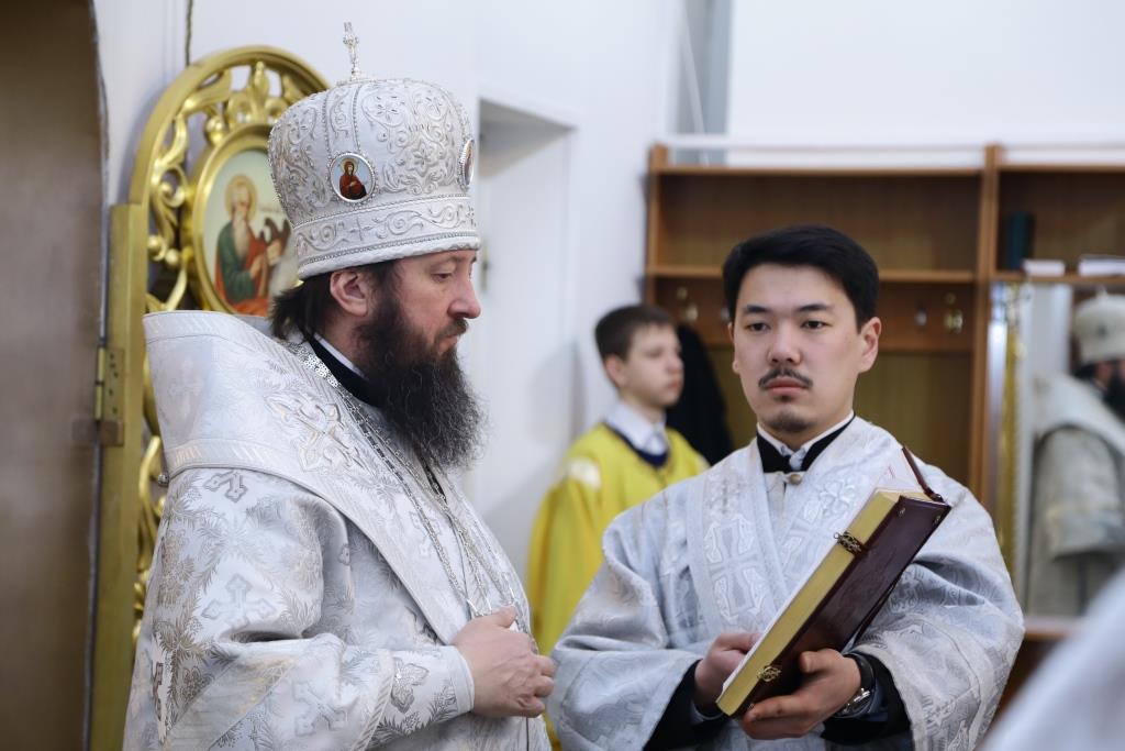 Преосвященнейший епископ Усть-Каменогорский и Семипалатинский Амфилохий совершил Божественную Литургию святителя Иоанна Златоуста в Свято-Андреевском кафедральном соборе города Усть-Каменогорска. Архипастырю сослужили: духовник епархии архимандрит Спиридон (Теплухин), ключарь кафедрального собора иеромонах Никодим (Авдеев), заведущий канцелярией епархии иерей Константин Дьяков, клирик собора иеромонах Севастиан (Андрющенко). Диаконский чин возглавил протодиакон Андрей Дудник.