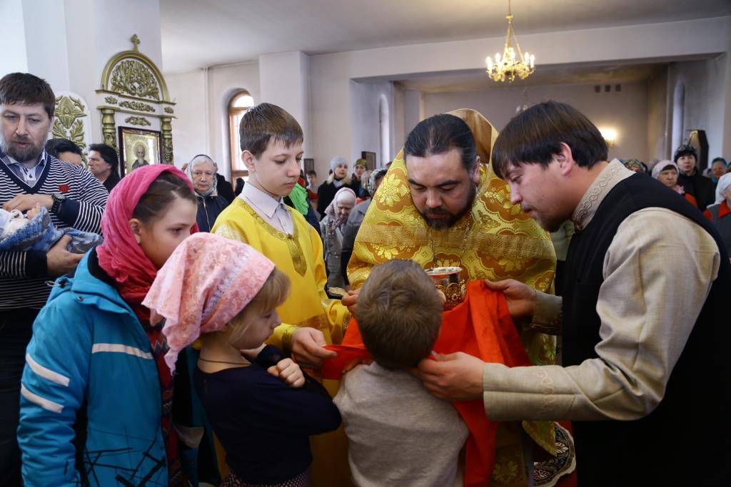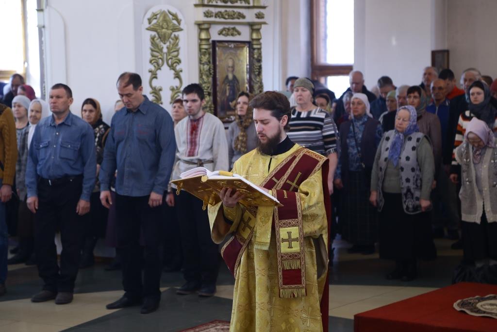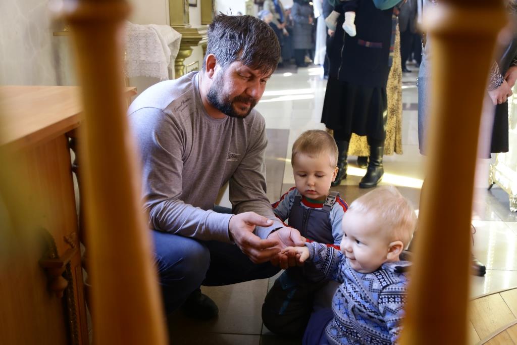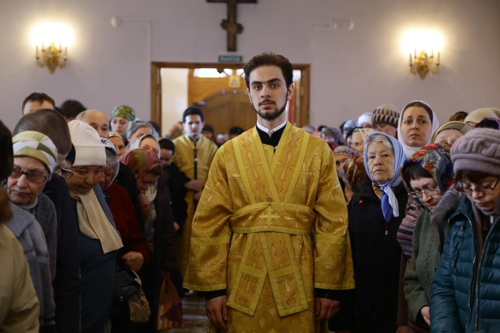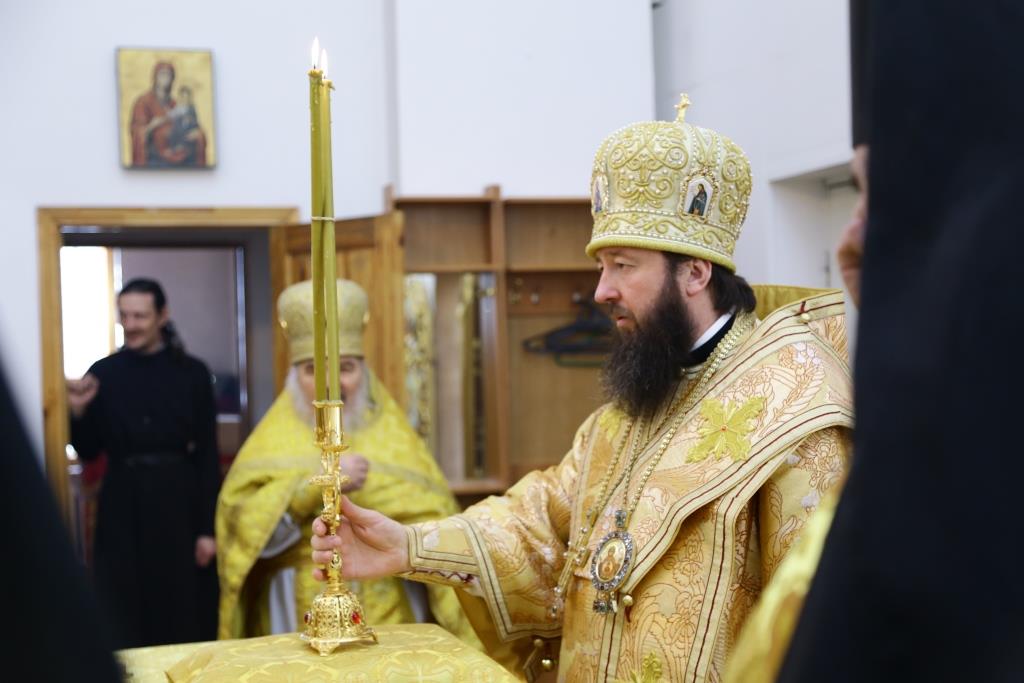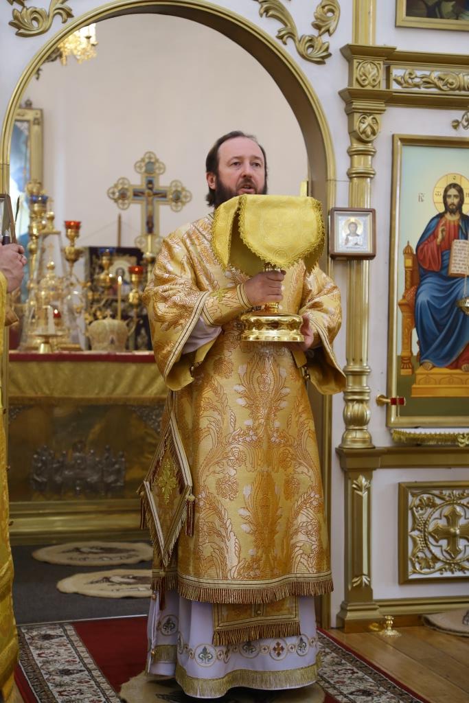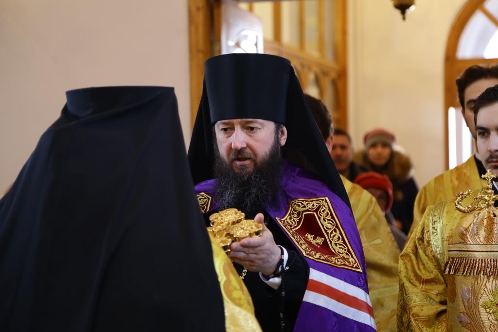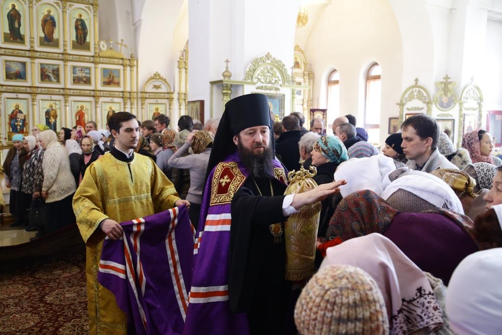 В воскресный день Архипастырю сослужили: духовник епархии архимандрит Спиридон (Теплухин), ключарь кафедрального собора иеромонах Никодим (Авдеев), клирик собора иеромонах Севастиан (Андрющенко). Диаконский чин возглавил протодиакон Андрей Дудник.