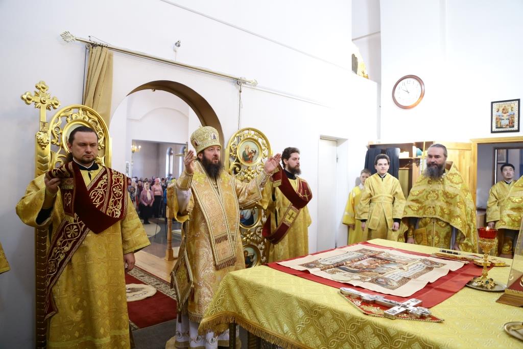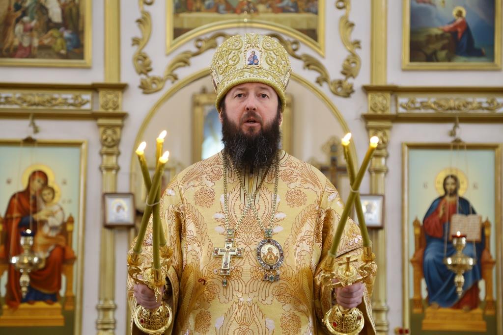 После окончания воскресного богослужения Преосвященнейший Владыка поздравил духовенство и прихожан с праздником и обратился к народу Божию со словами проповеди.