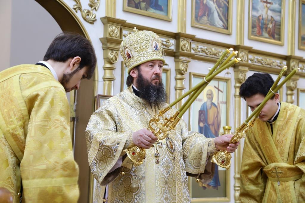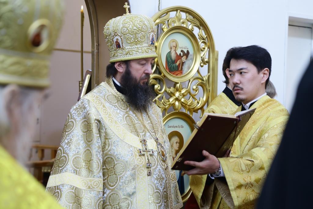 Управляющий Усть-Каменогорской и Семипалатинской епархией Преосвященнейший епископ Амфилохий возглавил служение Божественной литургии святителя Иоанна Златоуста в кафедральном соборе во имя апостола Андрея Первозванного города Усть-Каменогорска. Владыке сослужили: духовник Усть-Каменогорской епархии архимандрит Спиридон (Теплухин), ключарь Андреевского собора иеромонах Никодим (Авдеев), клирик собора иерей Алексий Клепиков, заведующий Епархиальной канцелярией иерей Константин Дьяков, протодиакон Андрей Дудник, иеродиакон Мефодий (Шевчук), иеродиакон Тимофей (Хитрич).