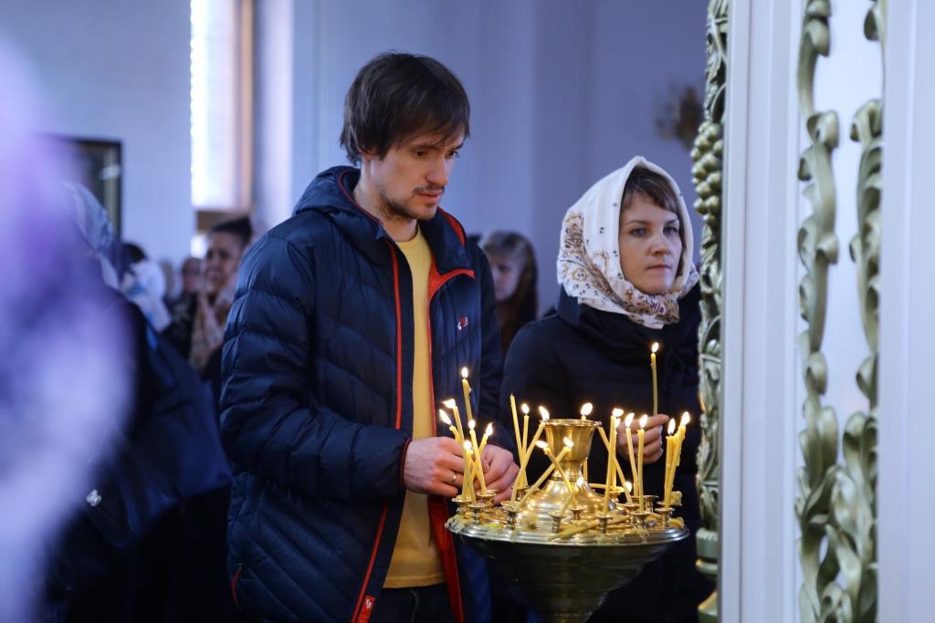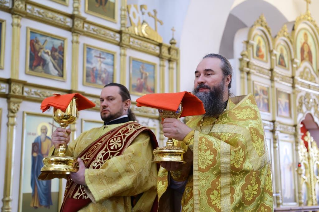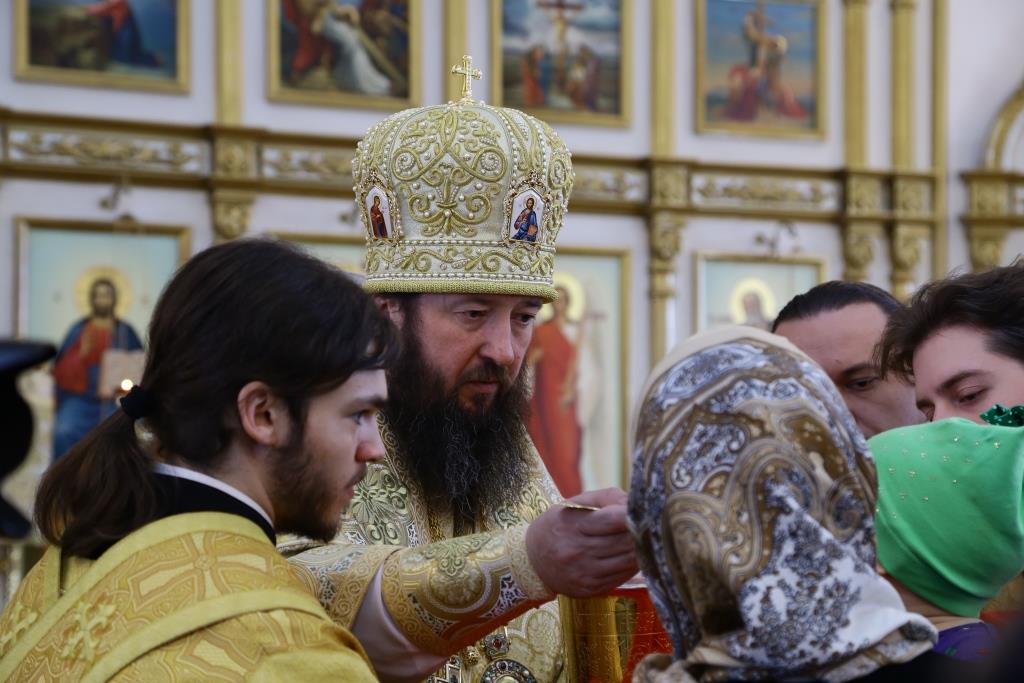 Перед Причастием мирян ключарь собора огласил Обращение Главы Православной Церкви Казахстана митрополита Астанайского и Казахстанского Александра перед началом Великого поста.