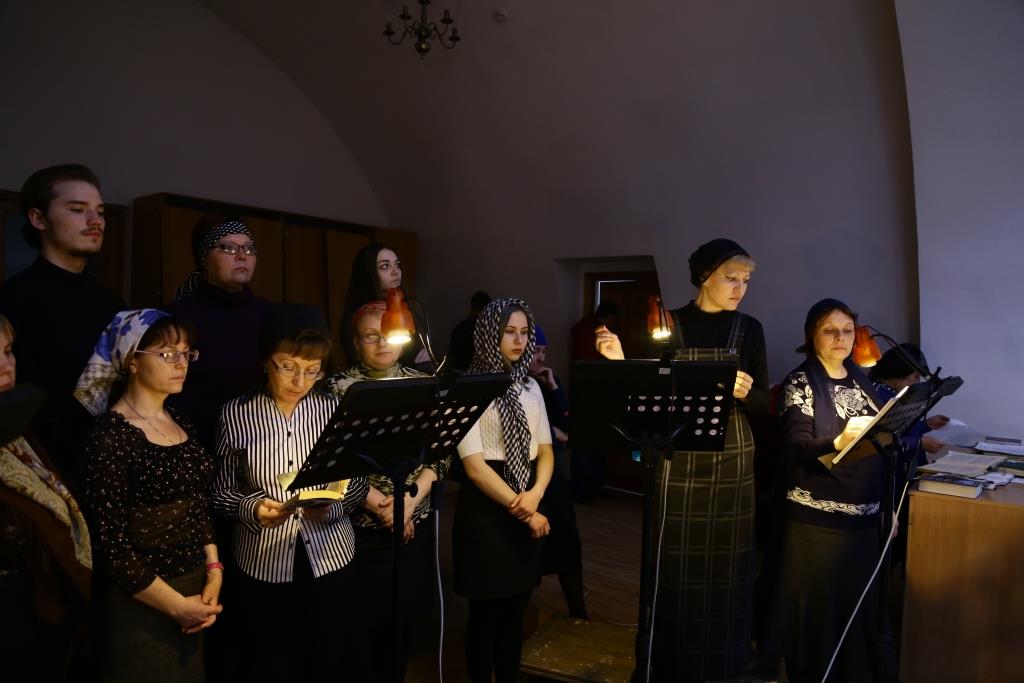 Песнопения повечерия и Великого канона исполнял хор Андреевского кафедрального собора под управлением регента В. Фёдоровой.