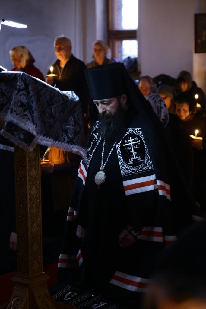 В четверг вечером Преосвященнейший епископ Амфилохий совершил в кафедральном соборе Великое повечерие с чтением заключительной, четвертой части Великого покаянного канона. В следующий раз творение преподобного Андрея Критского будет прочитано в день Мариина стояния, на пятой седмице Великого поста.