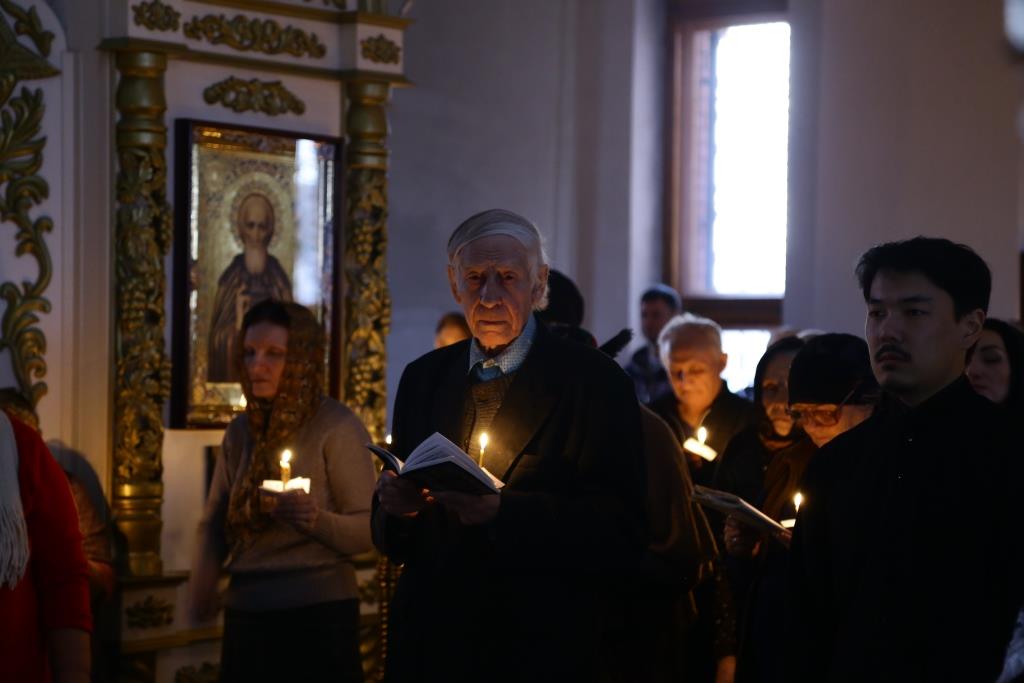 В четверг первой седмицы Святой Четыредесятницы в Андреевском кафедральном соборе города Усть-Каменогорска были совершены уставные великопостные богослужения – утреня, часы, изобразительны и вечерня.