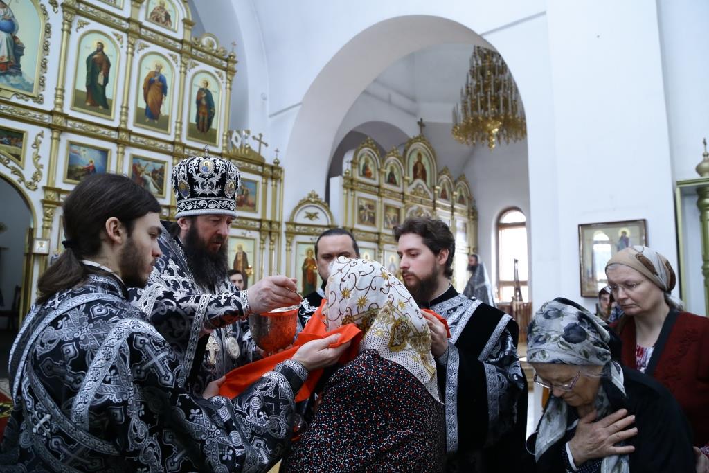 Затем Преосвященнейший Владыка совершил вечерню с Литургией Преждеосвященных Даров святителя Григория Двоеслова.
