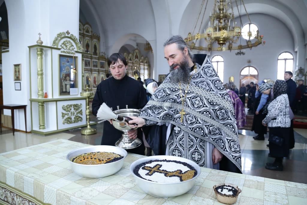 Справка: Коливом в традиции Православной Церкви называется постная пища, состоящая из вареной пшеницы или риса с добавлением меда, сухофруктов и орехов. Традиция освящения колива в пятницу первой седмицы Великого поста берет начало в IV веке. Римский император Юлиан, прозванный Отступником, желая помешать христианам соблюдать пост, приказал градоначальнику Константинополя окроплять в первую седмицу Великого поста все съестные припасы на рынках идоложертвенной кровью. Святой великомученик Феодор Тирон, явившись во сне архиепископу Евдоксию, повелел ему объявить всем христианам, чтобы никто не покупал ничего на рынках, а ели вареную пшеницу с медом - коливо (кутью или сочиво). Святой великомученик Феодор Тирон особым образом покровительствует христианам в дни поста, своим молитвенным предстательством оберегая верных от соблазнов и искушений. В память этого события Православная Церковь ежегодно совершает празднование в субботу первой недели Великого поста. В пятницу, в завершение Божественной Литургии Преждеосвященных даров читается канон молебный великомученику Феодору, составленный преподобным Иоанном Дамаскиным, после чего коливо благословляется и раздается верующим.
