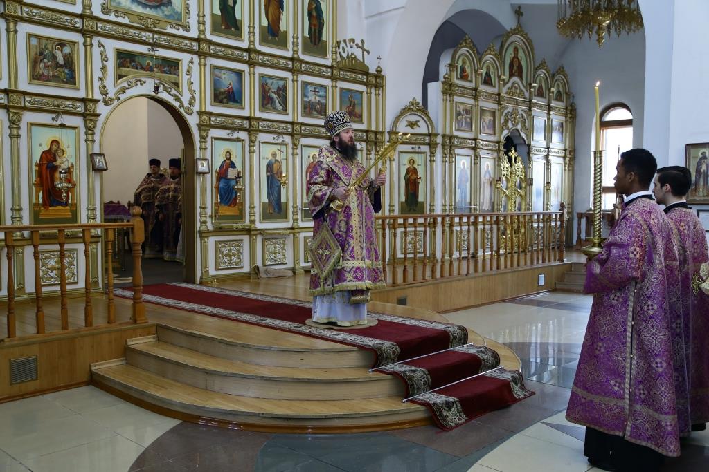 В первую субботу Святой Четыредесятницы Преосвященнейший епископ Усть-Каменогорский и Семипалатинский Амфилохий возглавил служение Божественной Литургии святителя Иоанна Златоуста в Свято-Андреевском кафедральном соборе города Усть-Каменогорска. Архипастырю сослужили: духовник епархии архимандрит Спиридон (Теплухин), ключарь собора иеромонах Никодим (Авдеев), клирик собора иерей Алексий Клепиков, заведующий епархиальной канцелярией иерей Константин Дьяков, протодиакон Андрей Дудник, иеродиаконы Мефодий (Шевчук) и Тимофей (Хитрич).