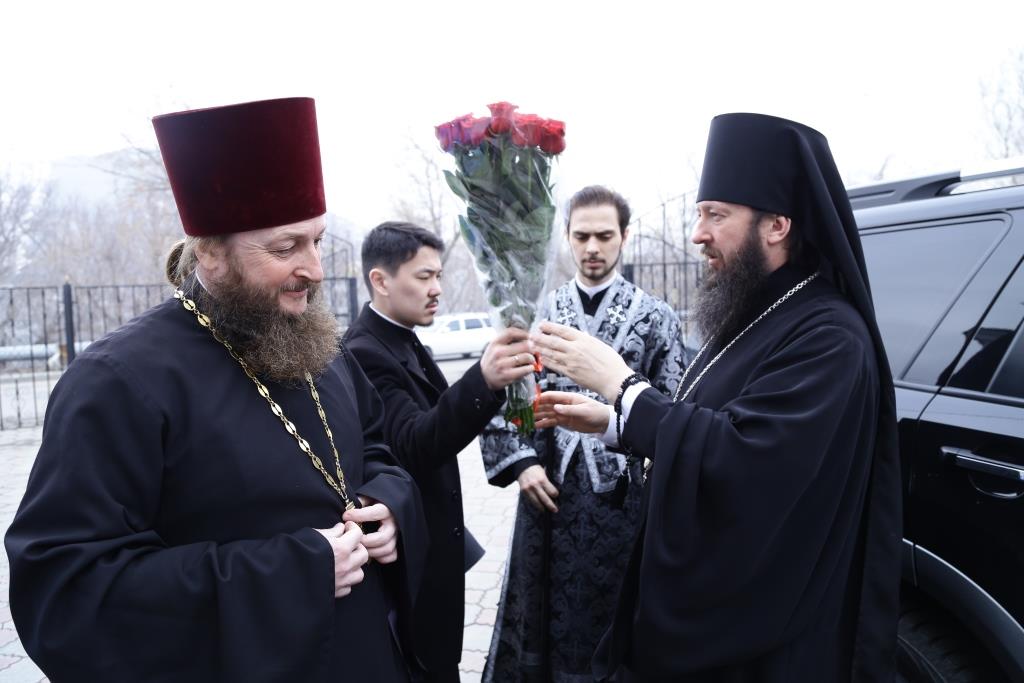 Архипастырю сослужили: духовник епархии архимандрит Спиридон (Теплухин), благочинный Усть-Каменогорского церковного округа иерей Алексий Анищенко, настоятель храма иерей Евгений Яганов, руководитель молодежного отдела епархии иерей Вячеслав Гутов, протодиакон Андрей Дудник.