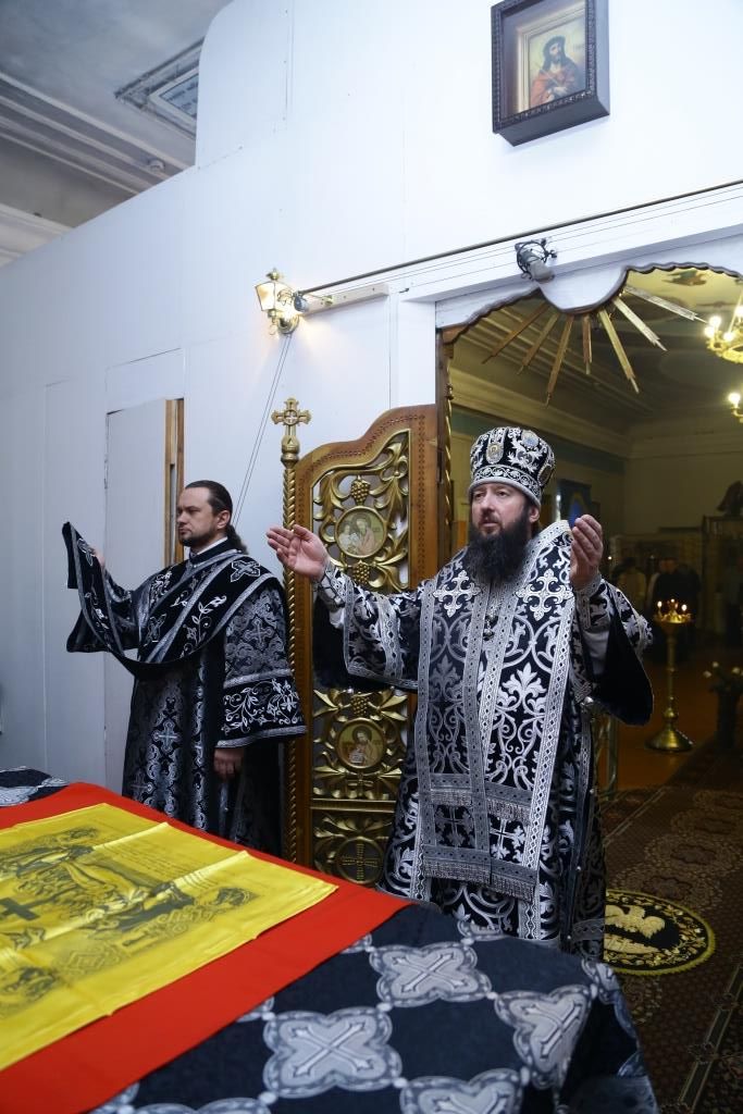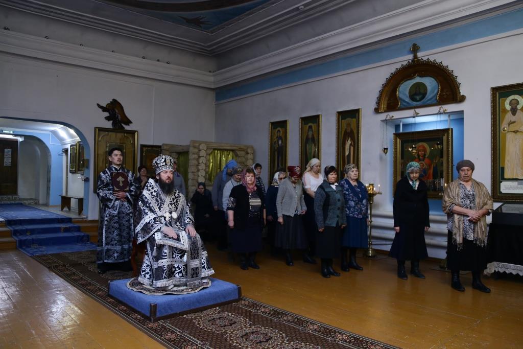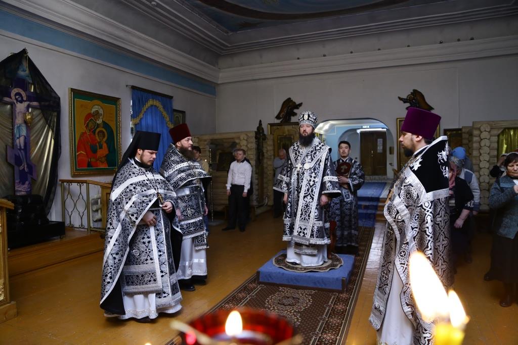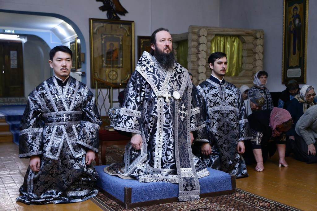 Преосвященнейший епископ Усть-Каменогорский и Семипалатинский Амфилохий возглавил служение Божественной Литургии Преждеосвященных Даров в Богородице-Рождественском храме города Усть-Каменогорска.