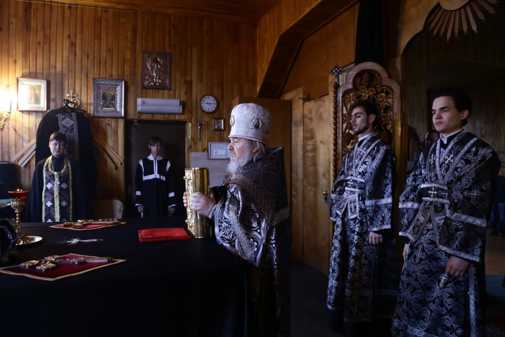 Владыке сослужили: духовник епархии архимандрит Спиридон (Теплухин), благочинный Усть-Каменогорского церковного округа, настоятель храма иерей Алексий Анищенко, ключарь Андреевского кафедрального собора иеромонах Никодим (Авдеев), клирики Покровской церкви иеромонах Иустин (Ларионов) и иерей Александр Закурдаев, клирик Андреевского кафедрального собора иерей Алексий Клепиков, руководитель епархиального отдела по делам молодежи иерей Вячеслав Гутов. Диаконский чин возглавил протодиакон Андрей Дудник.