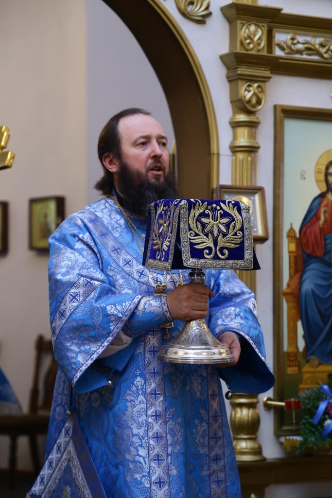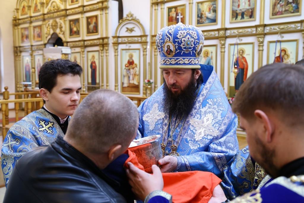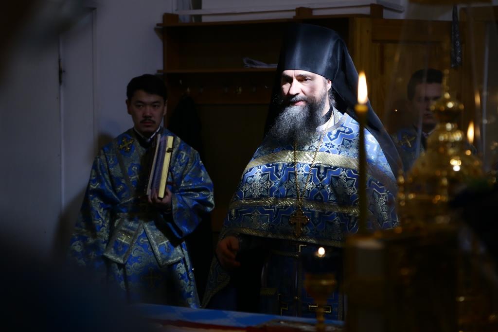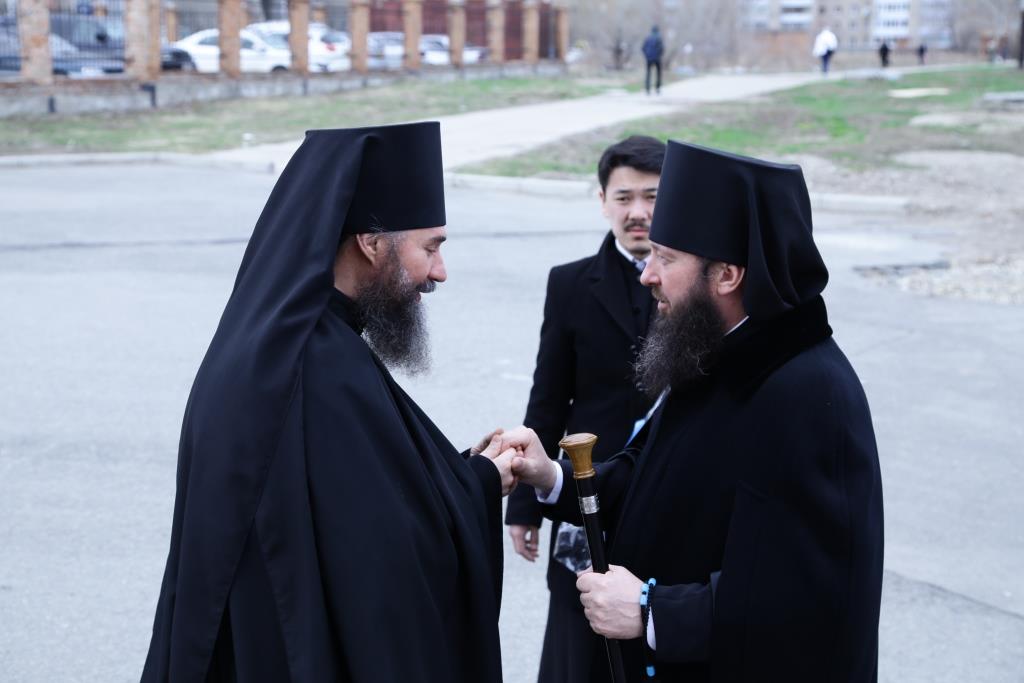 Его Преосвященству сослужили: духовник Усть-Каменогорской епархии архимандрит Спиридон (Теплухин), ключарь Андреевского собора иеромонах Никодим (Авдеев), клирики собора иерей Алексий Клепиков и иерей Константин Дьяков, протодиакон Георгий Засыпкин, протодиакон Андрей Дудник, иеродиакон Тимофей (Хитрич).