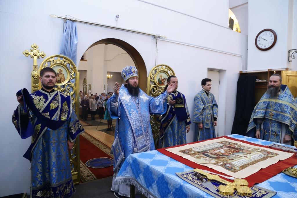 По окончании праздничной Божественной Литургии было совершено славление Божией Матери, после чего Владыка Амфилохий поздравил всех присутствующих с праздником и обратился ко всем молящимся с Архипастырским словом.