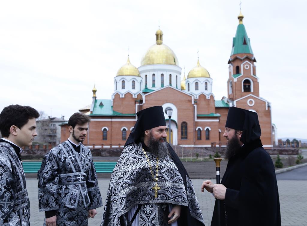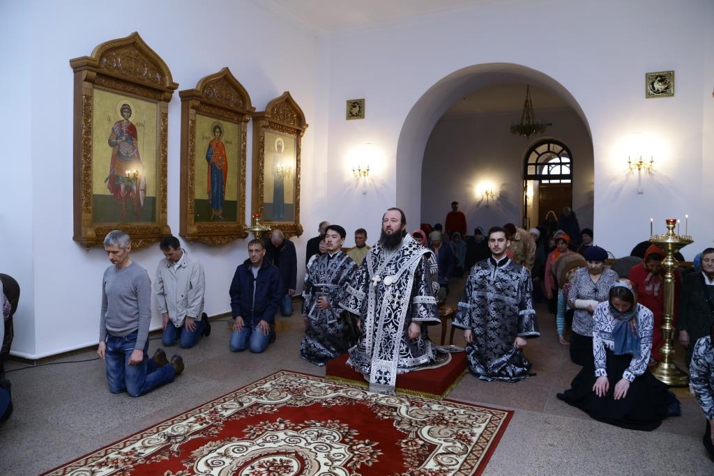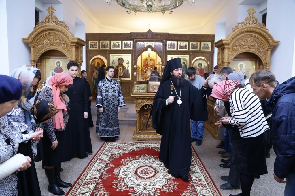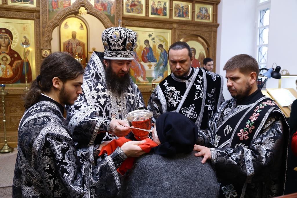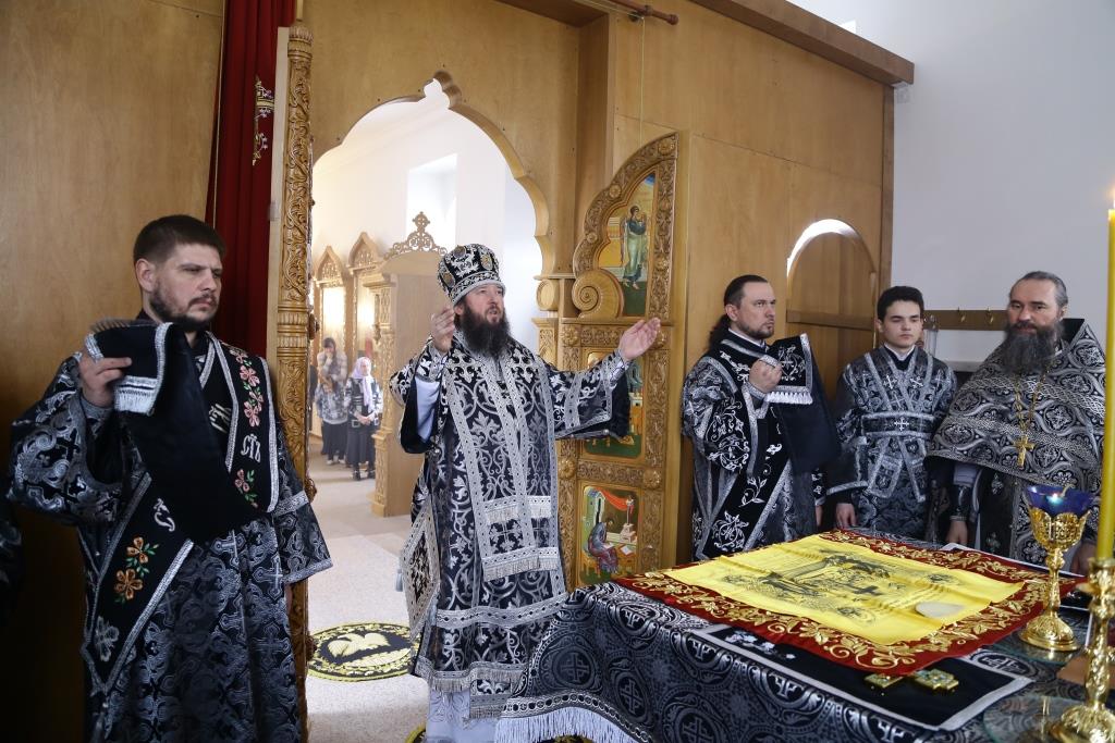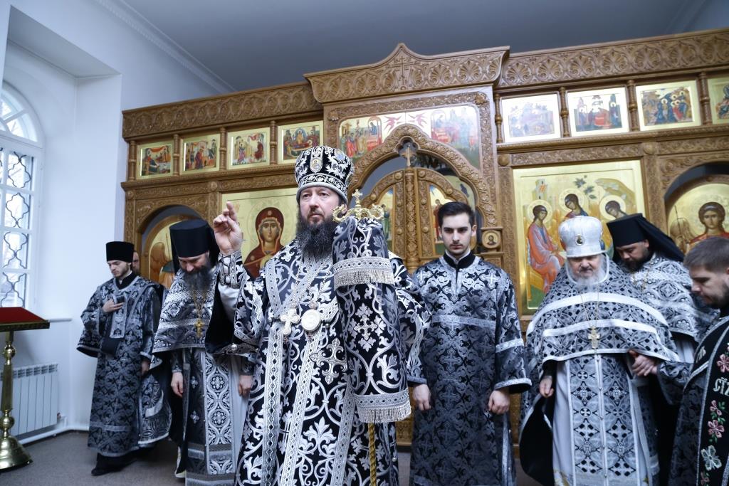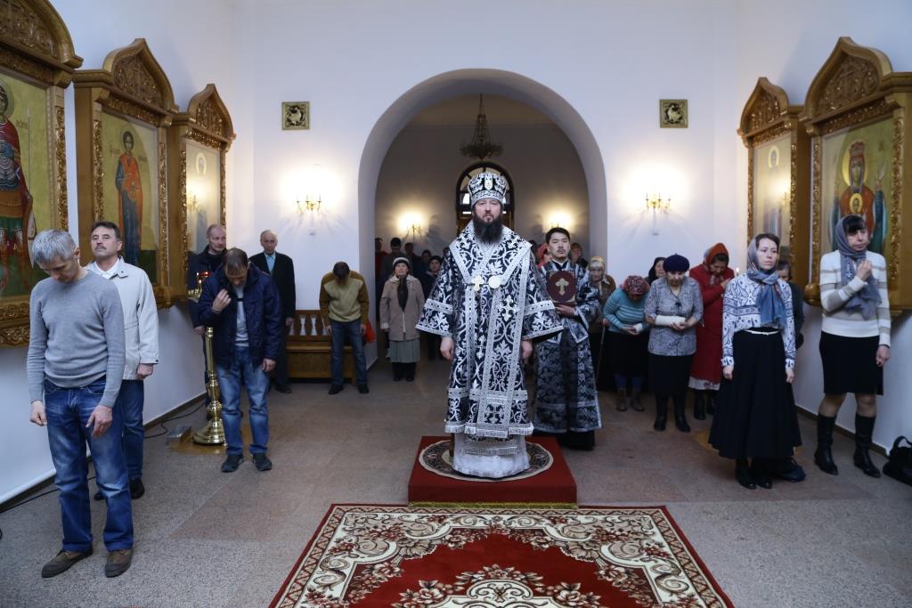 Управляющий Усть-Каменогорской и Семипалатинской епархией Преосвященнейший епископ Амфилохий возглавил служение Божественной Литургии Преждеосвященных Даров в старейшем храме Усть-Каменогорска – крепостном соборе в честь Святой и Живоначальной Троицы. Архипастырю сослужили: духовник епархии архимандрит Спиридон (Теплухин), ключарь Андреевского кафедрального собора иеромонах Никодим (Авдеев), клирики кафедрального собора иеромонах Севастиан (Андрющенко) и иерей Константин Дьяков. Диаконский чин возглавил протодиакон Георгий Засыпкин.