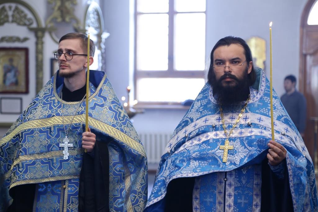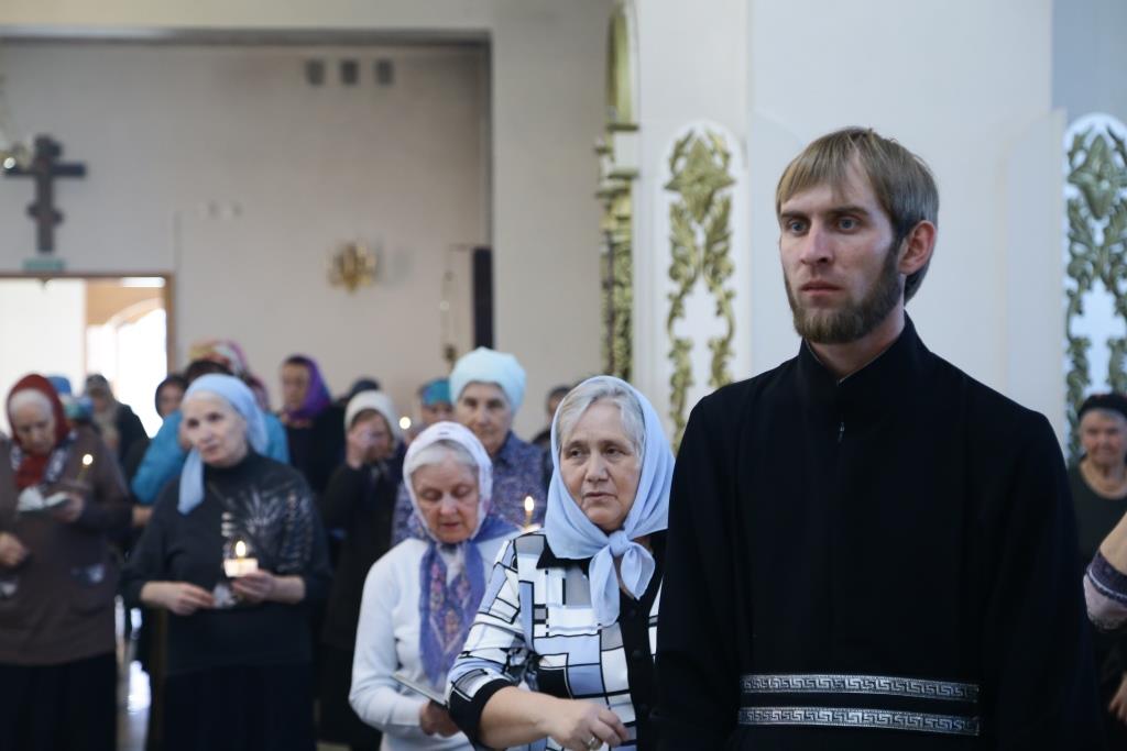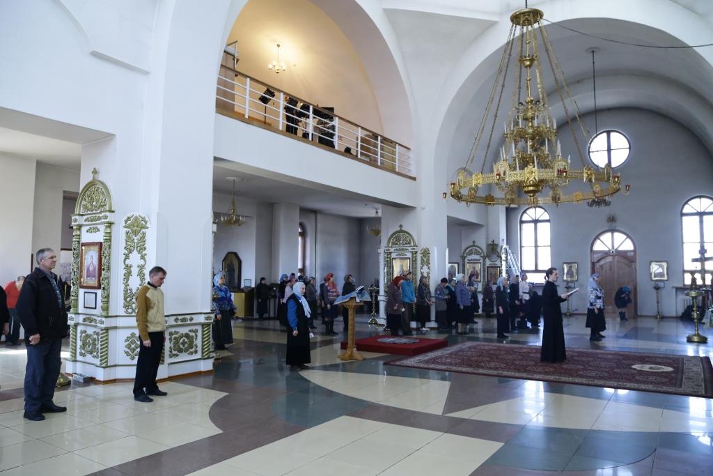 Песнопения утрени и Акафиста исполнял хор кафедрального храма под управлением регента В. Фёдоровой.