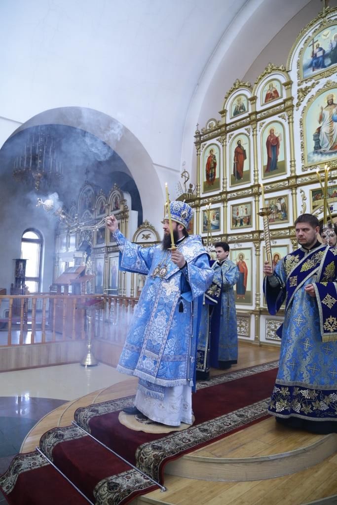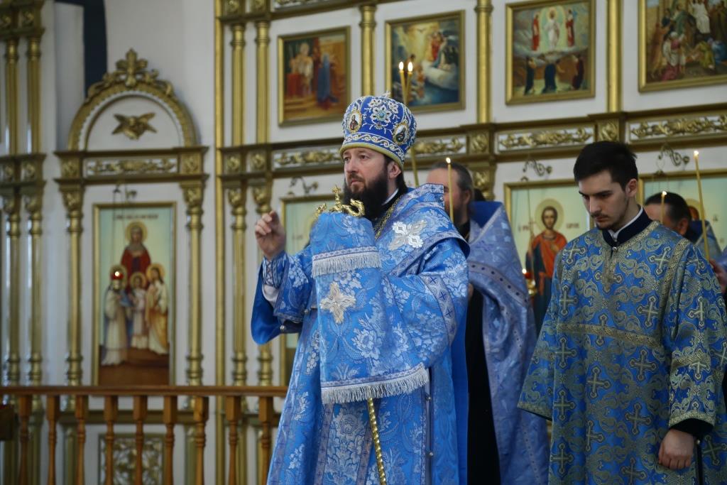В канун праздника Похвалы Божией Матери (Субботы Акафиста) Преосвященнейший епископ Усть-Каменогорский и Семипалатинский Амфилохий совершил утреню с чтением Акафиста Пресвятой Богородице в Свято-Андреевском кафедральном соборе города Усть-Каменогорска.