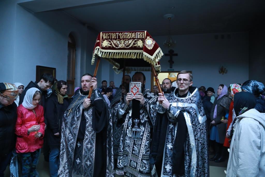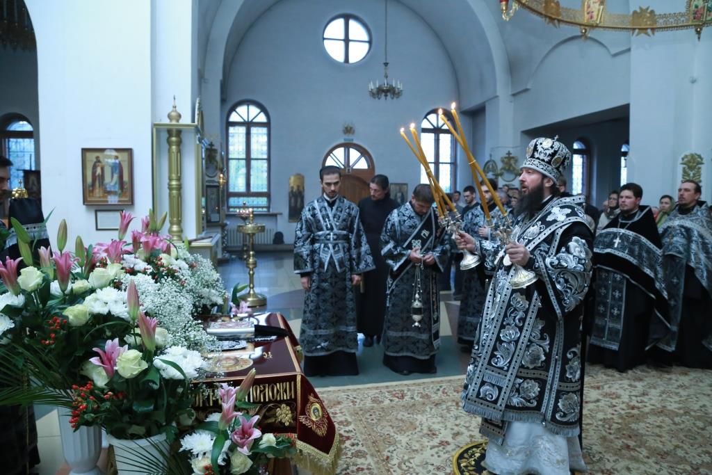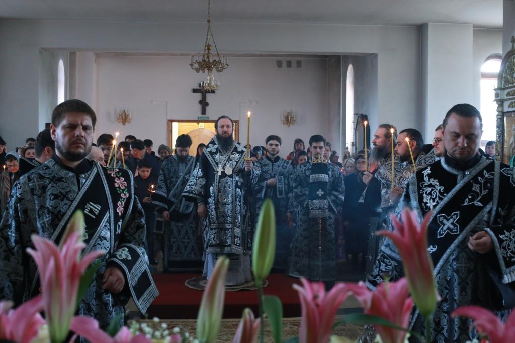 По завершении крестного хода перед Плащаницей были прочитаны пророчество о воскресении из книги пророка Иезекииля (Иез. 37:1-14), чтение из Апостола об искупительной Жертве, принесенной Христом (1 Кор. 6:7-8), после чего епископ Амфилохий прочитал евангельское зачало о запечатании гроба Господня и приставлении к нему стражи (Мф. 27:62-66).