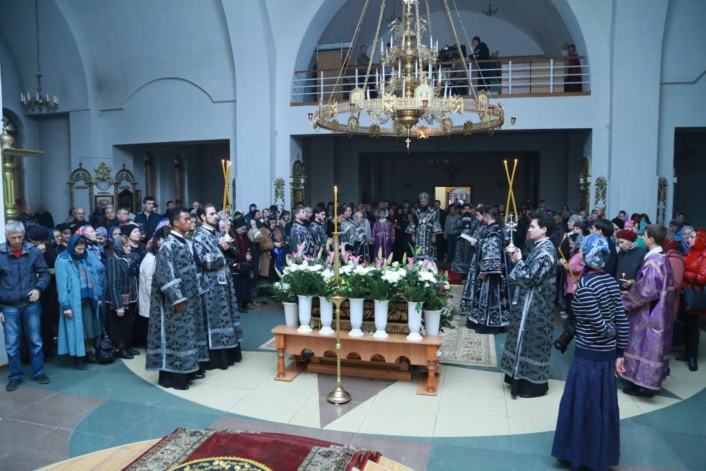 Преосвященнейший епископ Усть-Каменогорский и Семипалатинский Амфилохий совершил утреню с чином погребения Господа нашего Иисуса Христа в Андреевском кафедральном соборе города в устье Каменных гор. Его Преосвященству сослужили: духовник епархии архимандрит Спиридон (Теплухин), ключарь кафедрального собора иеромонах Никодим (Авдеев), клирики собора иерей Алексий Клепиков, иеромонах Севастиан (Андрющенко) и иерей Константин Дьяков. Диаконский чин возглавил протодиакон Георгий Засыпкин.