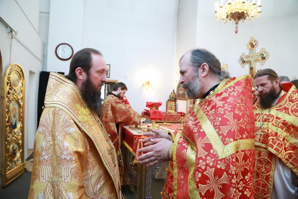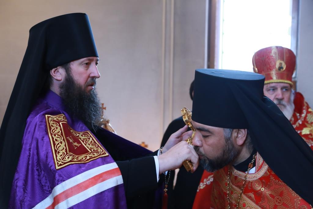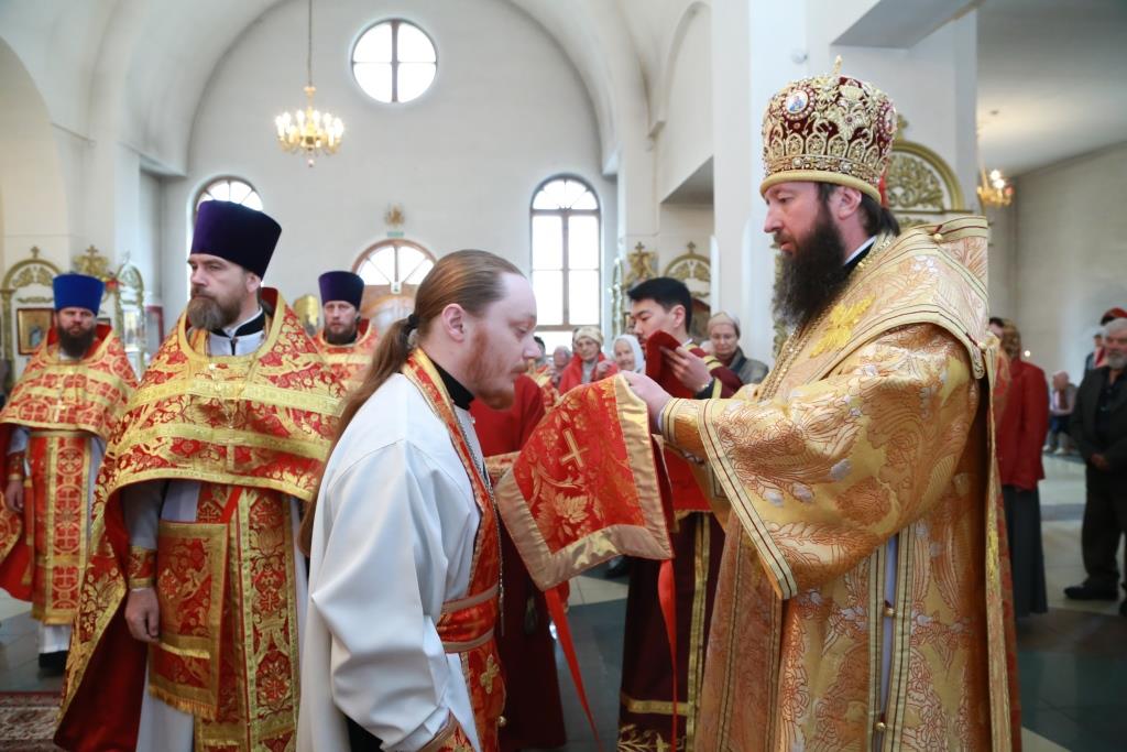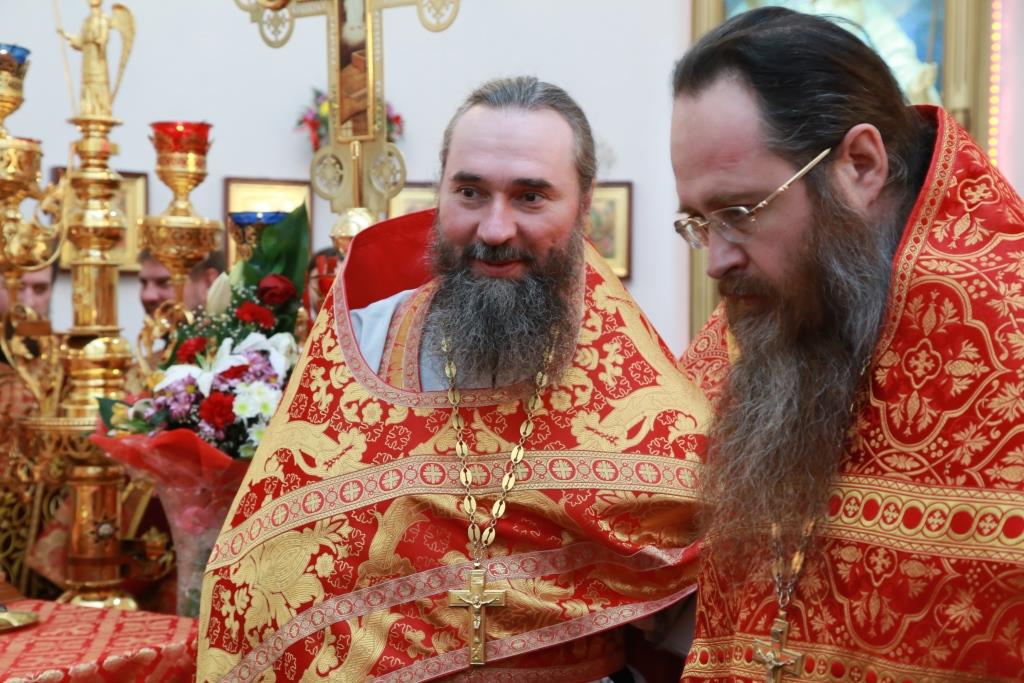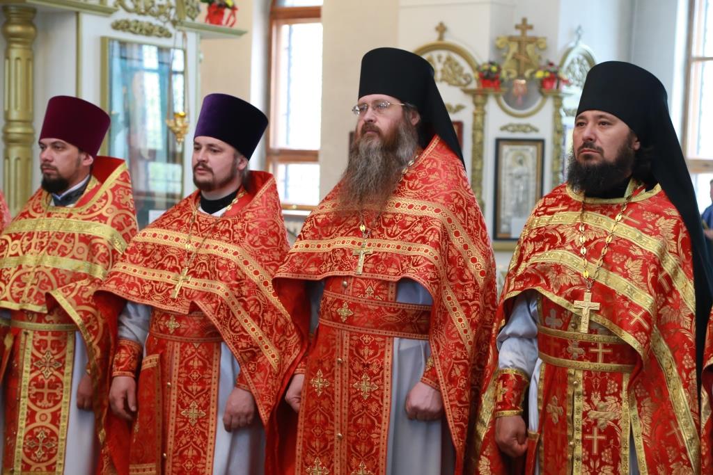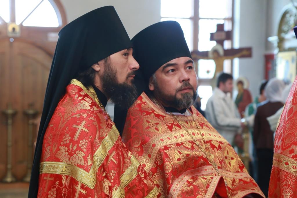 Его Преосвященству сослужили: духовник Усть-Каменогорской епархии архимандрит Спиридон (Теплухин), благочинный Семипалатинского церковного округа митрофорный протоиерей Феодор Проскурин, благочинный Усть-Каменогорского церковного округа иерей Алексий Анищенко, и.о. секретаря епархии иерей Евгений Яганов, ключарь Андреевского кафедрального собора иеромонах Никодим (Авдеев), духовенство Усть-Каменогорской и Семипалатинской епархии. Диаконский чин возглавил протодиакон Георгий Засыпкин.