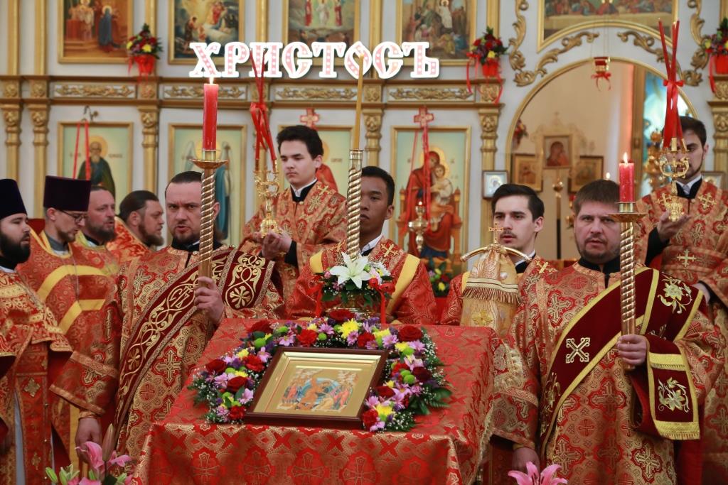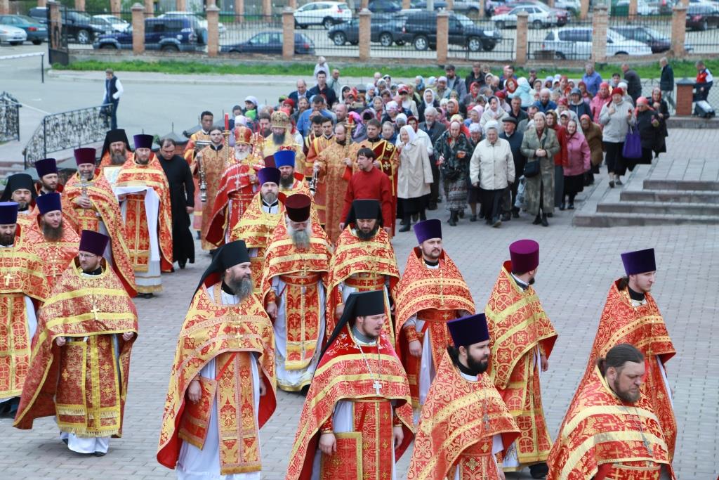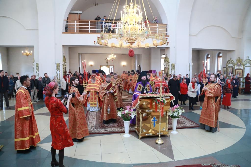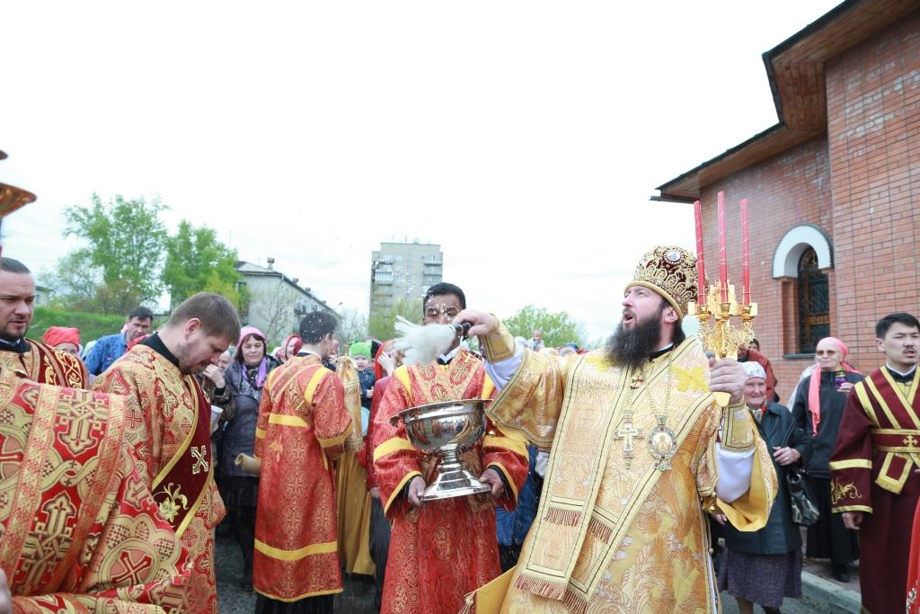 После заамвонной молитвы был совершен пасхальный крестный ход.