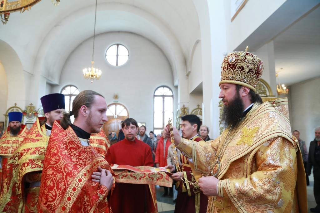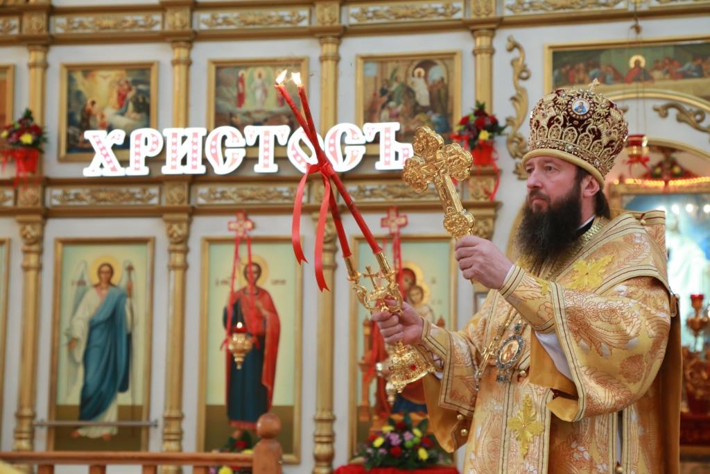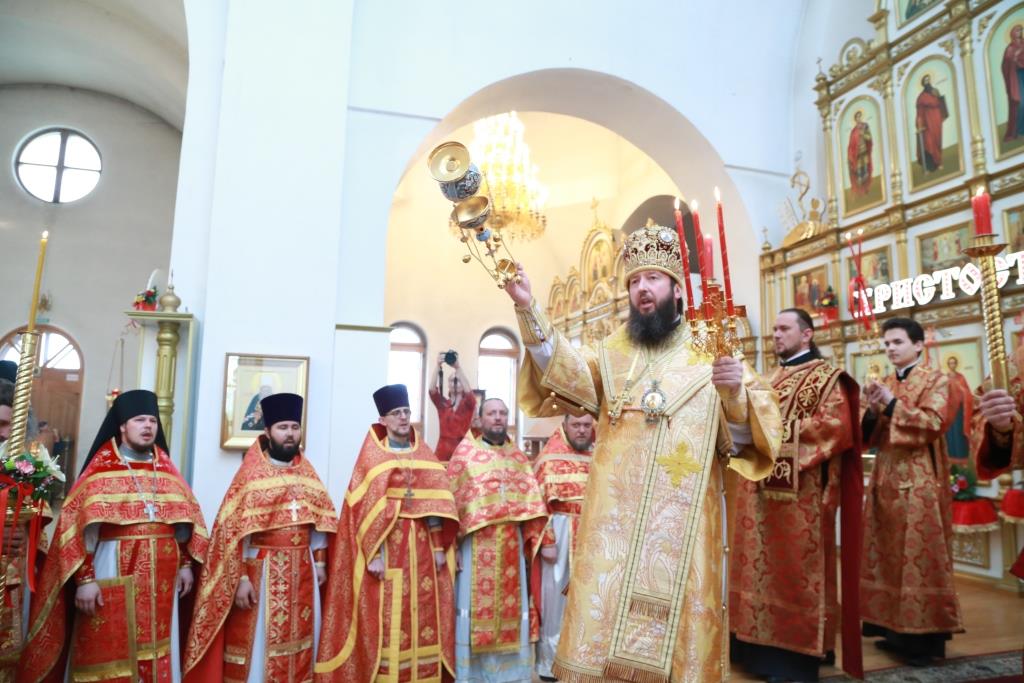 В четверг Светлой седмицы Преосвященнейший епископ Усть-Каменогорский и Семипалатинский Амфилохий совершил Божественную литургию в Свято-Андреевском кафедральном соборе столицы Рудного Алтая.