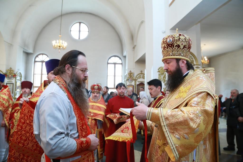 На малом входе за усердное служение Святой Православной Церкви ряд клириков к празднику Святой Пасхи был удостоен богослужебно-иерархических наград.