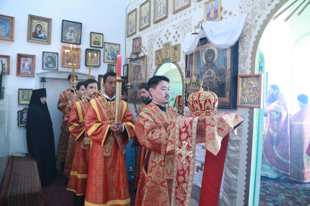 На Божественной Литургии молились и причащались Святых Христовых Таин и.о. настоятельницы женского монастыря монахиня Марионилла (Помельникова) с сестрами обители, прихожане храмов Семипалатинска и паломники и окрестных населенных пунктов.