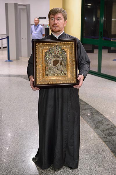 В международном аэропорту Алма-Аты Казанскую икону Царицы Небесной встречали священнослужители Южной столицы.