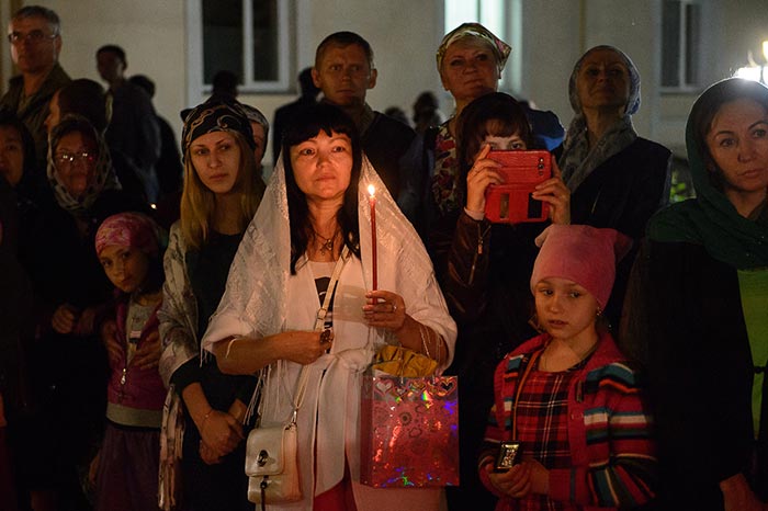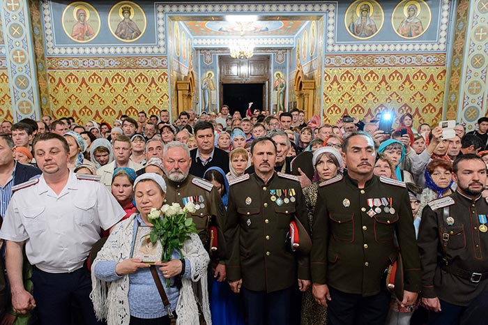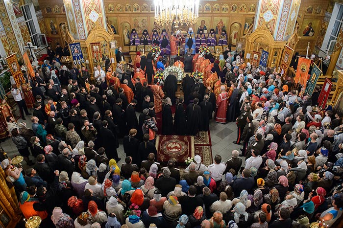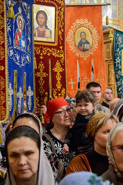 За богослужением молились: настоятельница Иверско-Серафимовского женского монастыря Алма-Аты игумения Любовь (Якушкина) с сестрами обители; сотрудники Алма-Атинского епархиального управления; казачество; студенты Алма-Атинской Православной Духовной семинарии; благотворители епархии; учащиеся воскресных школ алма-атинских приходов. Почтить великую святыню Православия собрались многочисленные верующие.