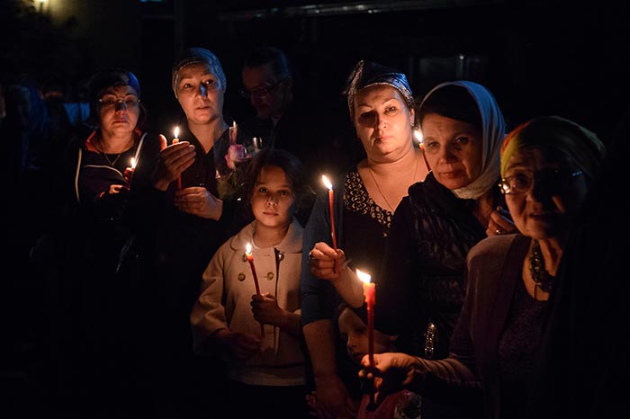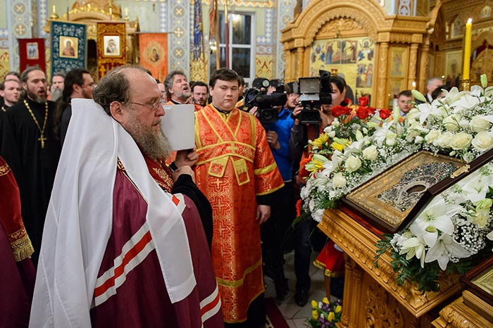 На протяжении вечернего времени в Софийском соборе перед киотом с чудотворным образом непрерывно совершались молебны и происходило поклонение верующих.