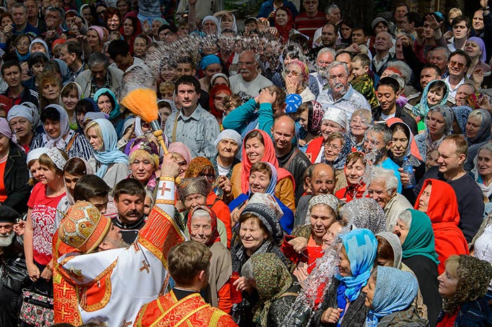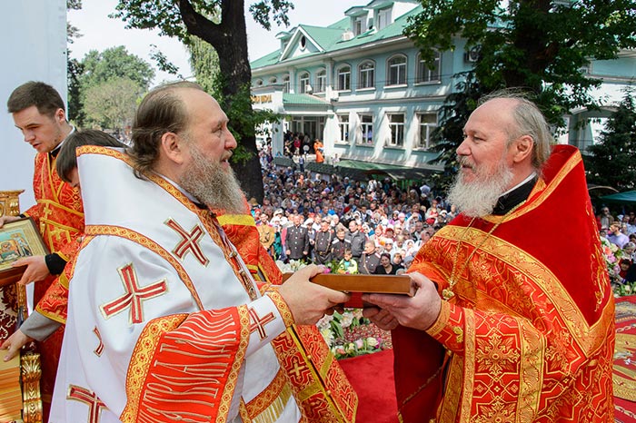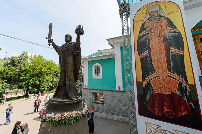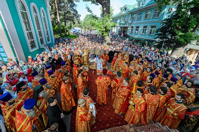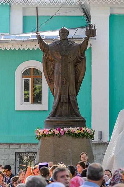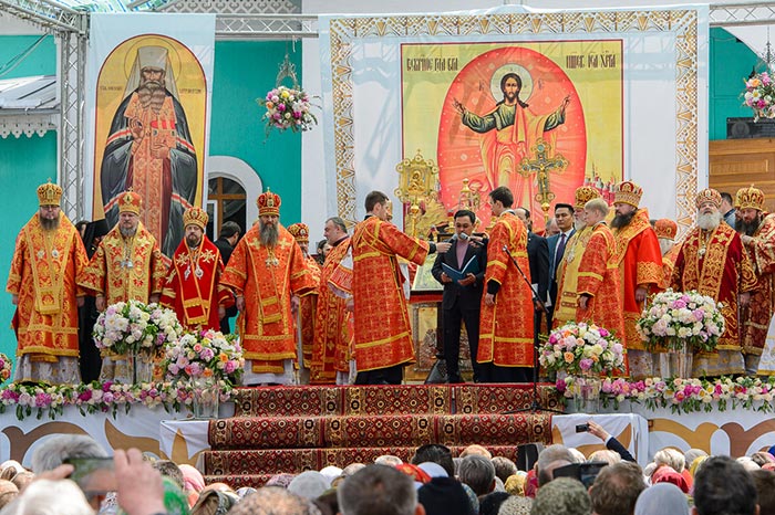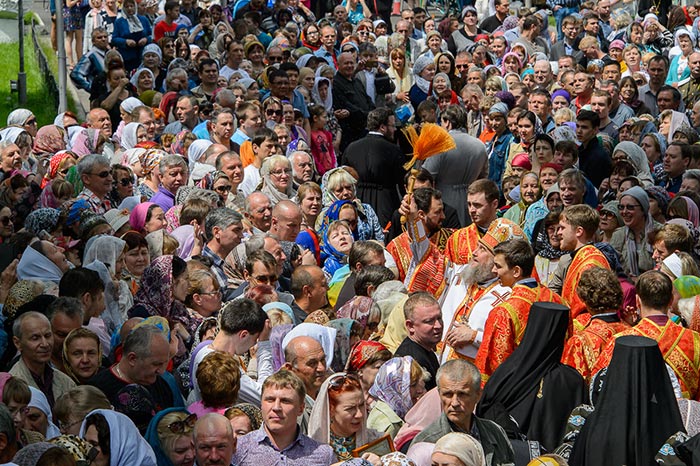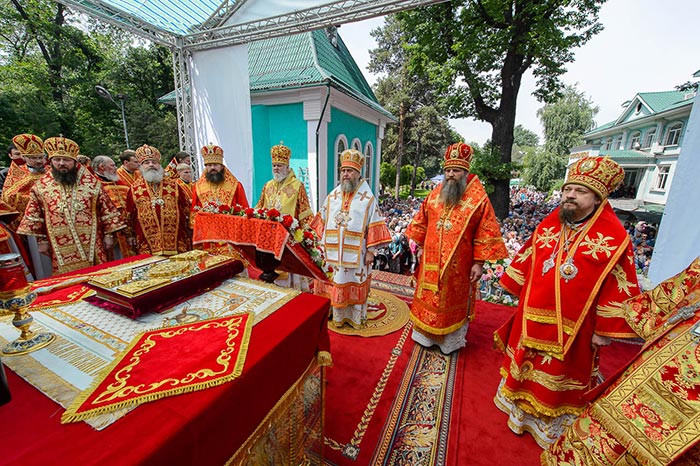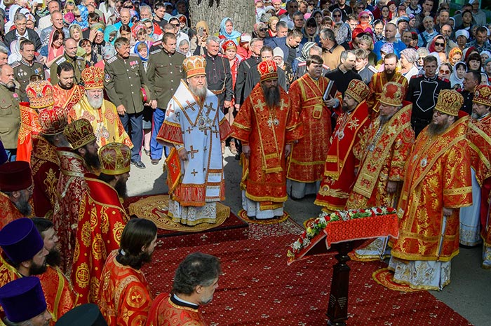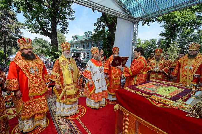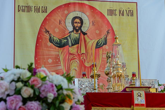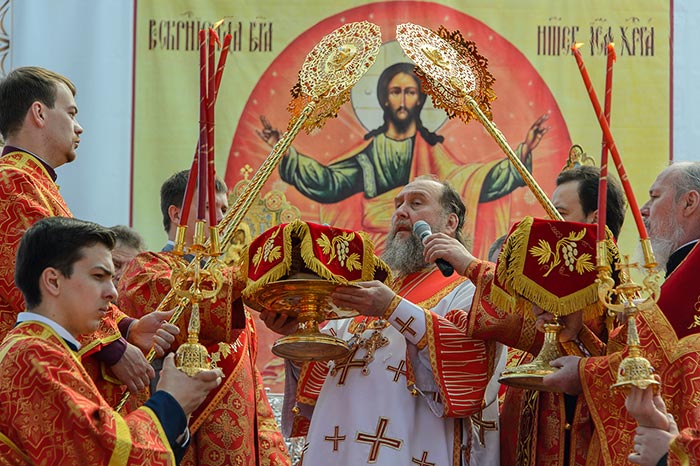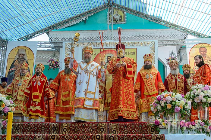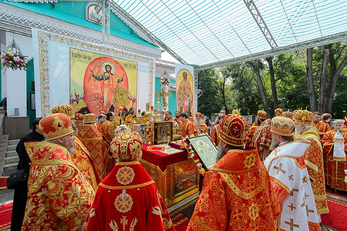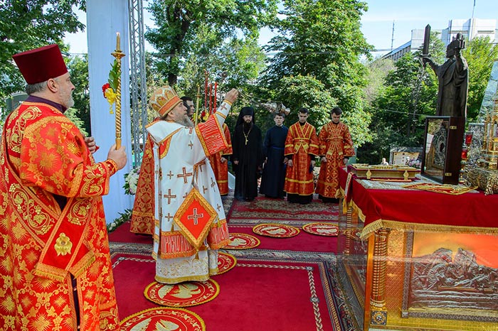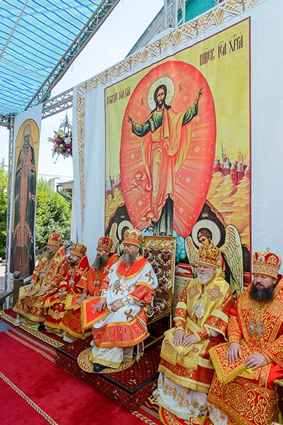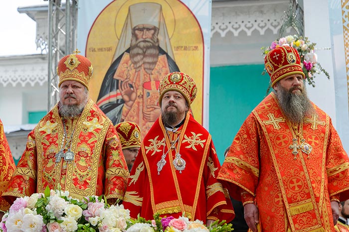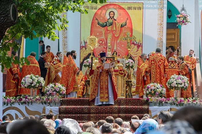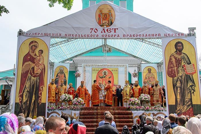 Праздничная Божественная Литургия в этот день совершалась под открытым небом, на площади перед Никольским собором.