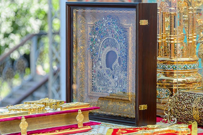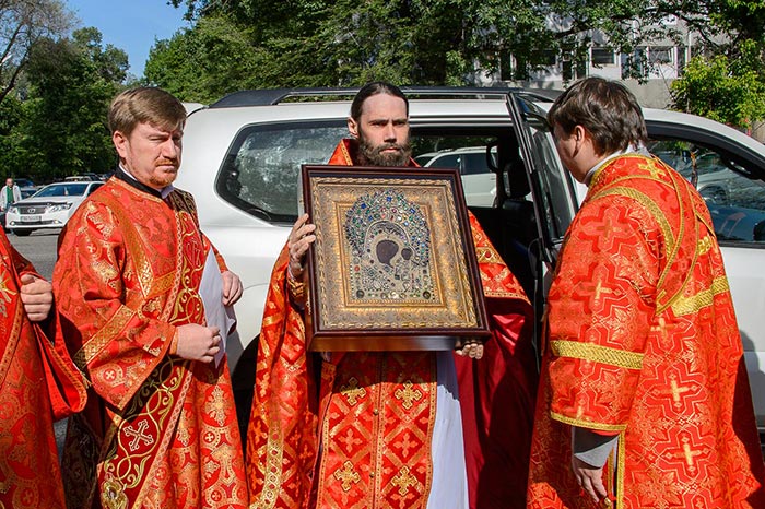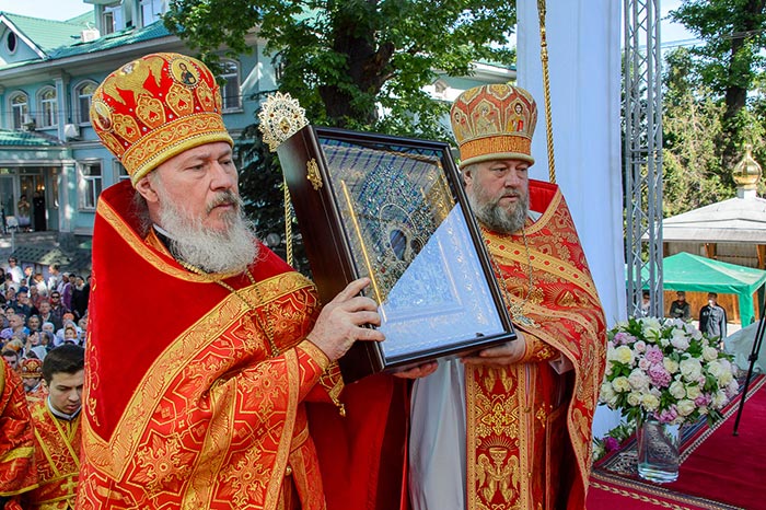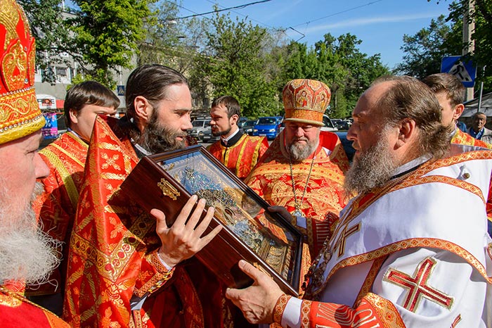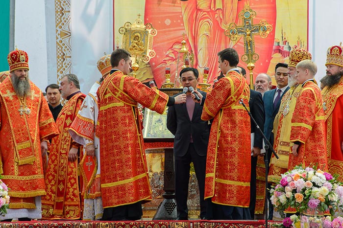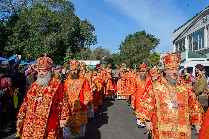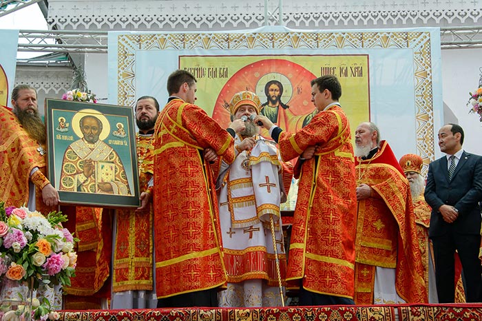 К началу богослужения в Никольский собор была доставлена чудотворная Казанская икона Пресвятой Богородицы, пребывающая в пределах Казахстана по благословению Святейшего Патриарха Московского и всея Руси. Крестным ходом при пении пасхальных тропарей святыня была перенесена от ворот храма и установлена на престоле.