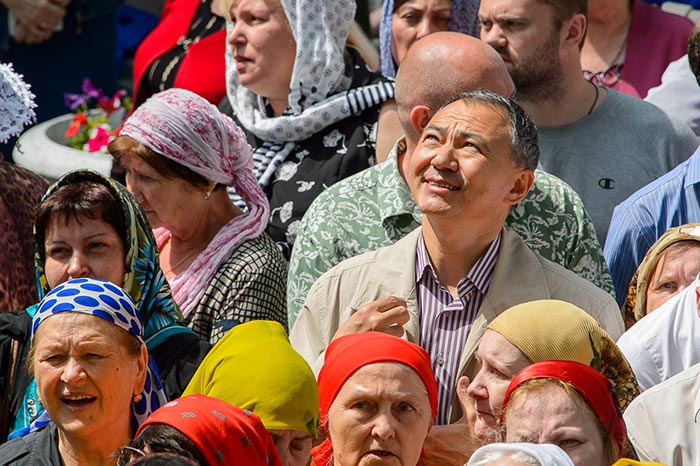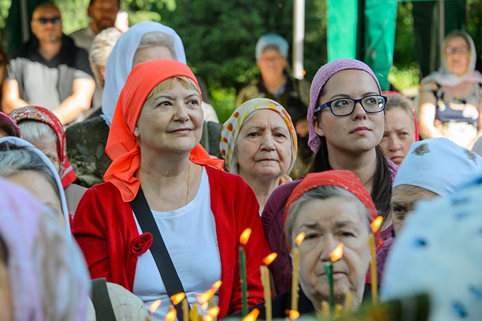 За богослужением молились: настоятельница Иверско-Серафимовского женского монастыря Алма-Аты игумения Любовь (Якушкина) с сестрами обители; настоятельница Богоявленского женского монастыря города Углича игумения Антонина (Злотникова); сотрудники Алма-Атинского епархиального управления; казачество; студенты Алма-Атинской Православной Духовной семинарии; благотворители епархии; учащиеся и преподаватели Центральной воскресной школы и воскресных школ алма-атинских приходов, известные иконописцы – Заслуженный художник России С.Н. Соколов и член Союза художников России В.К. Курилов.