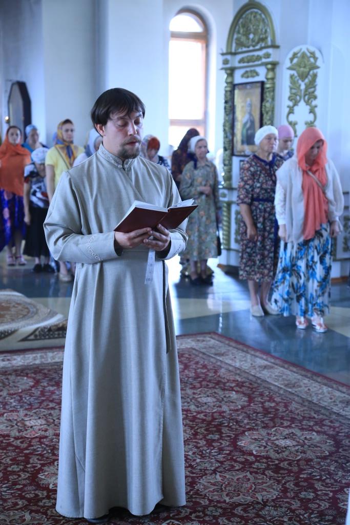 За вечерним Богослужением молились насельники Свято-Троицкой обители, руководители и сотрудники епархиальных отделов, прихожане кафедрального собора.