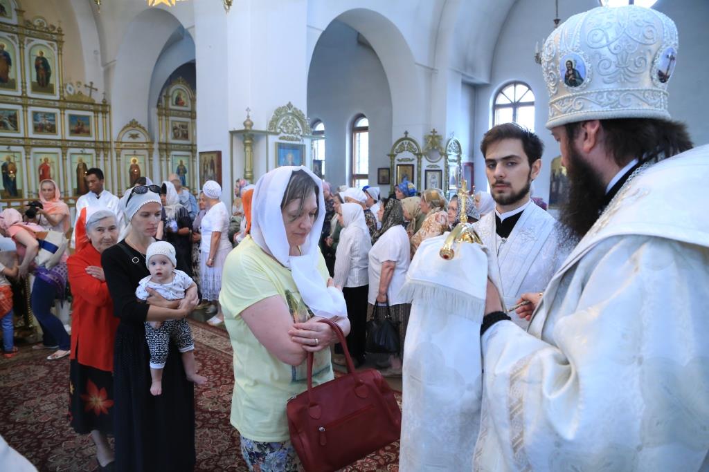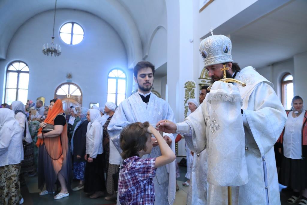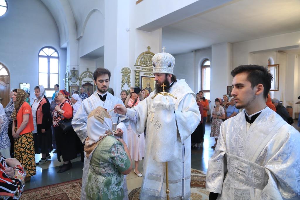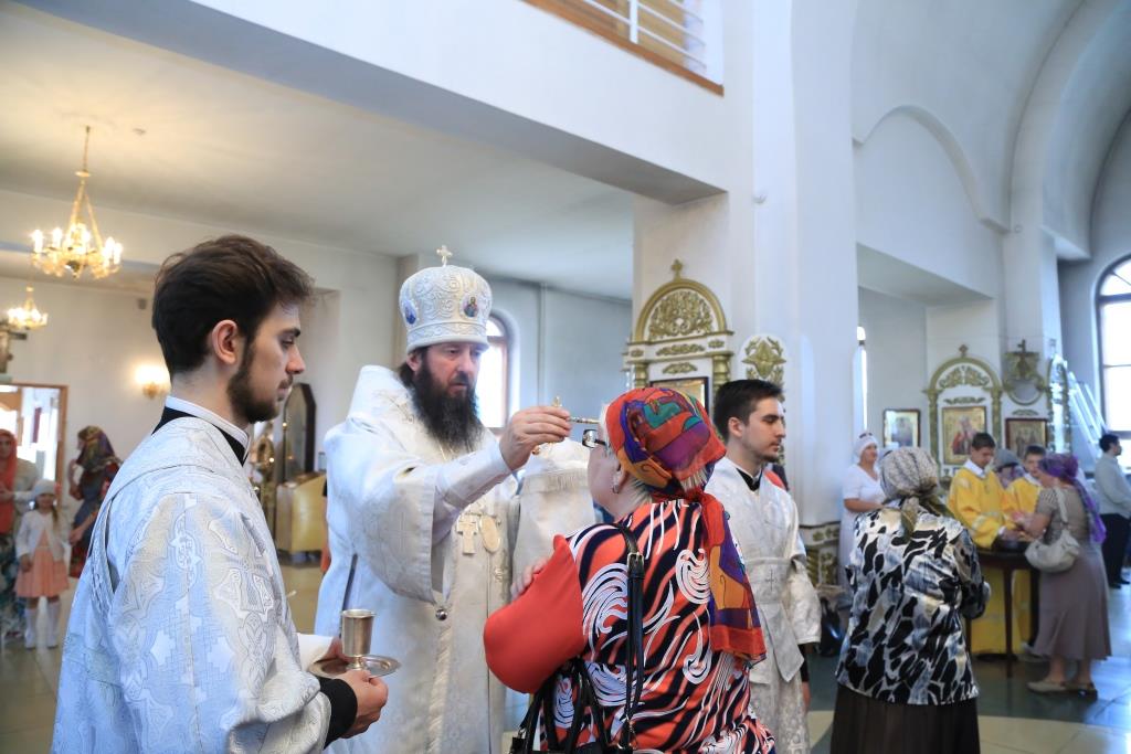 После чтения евангельского зачала, повествующего о явлении воскресшего Христа Спасителя Марии Магдалине и о последующем вознесении Господа к Отцу Небесному (Мк. 16, 9-20), Преосвященнейший Владыка помазал духовенство и всех молящихся освященным елеем. Все присутствующие за праздничным Богослужением получили очередной номер епархиального миссионерского издания «Андреевский листок», в котором рассказывалось об истории праздника Вознесения и о его духовном смысле.