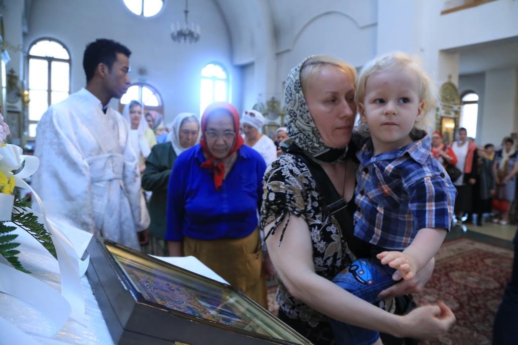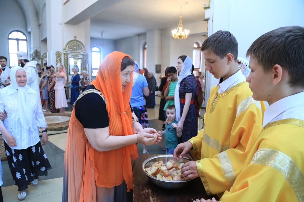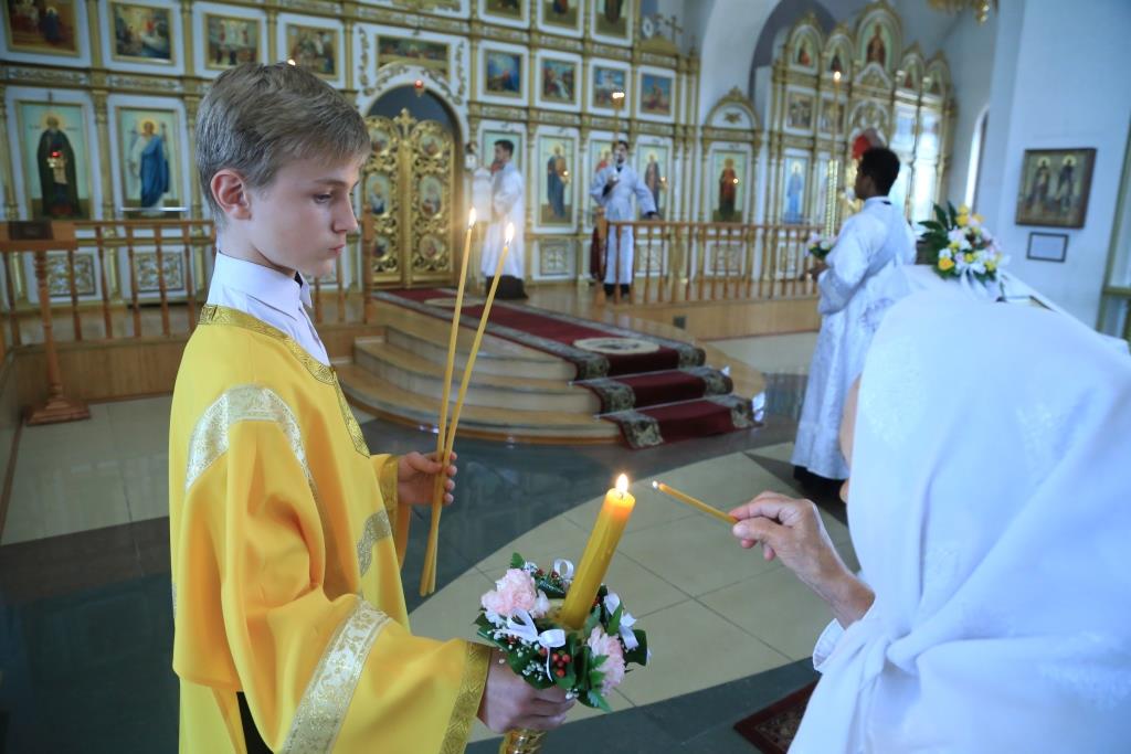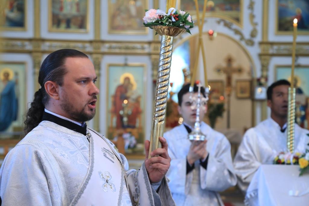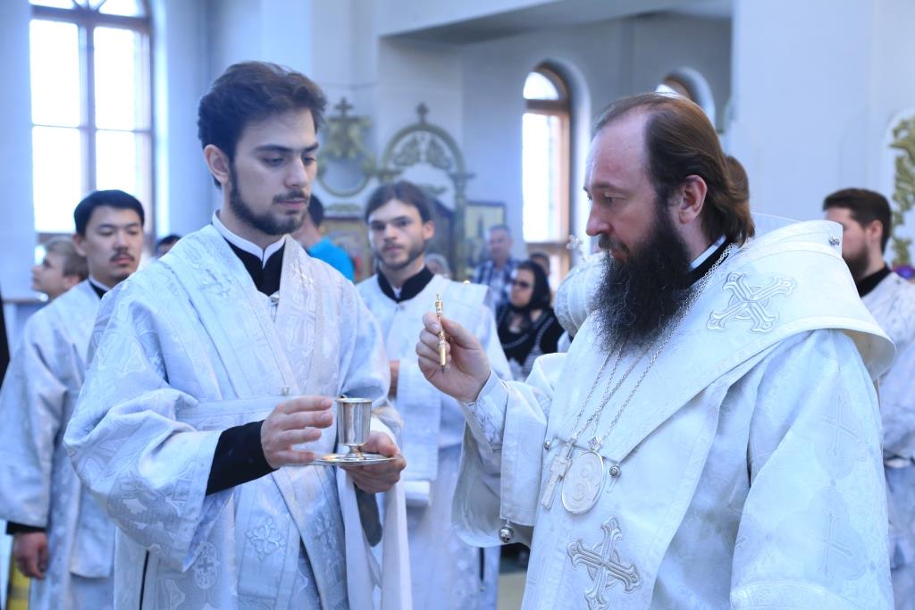 После чтения евангельского зачала, повествующего о явлении воскресшего Христа Спасителя Марии Магдалине и о последующем вознесении Господа к Отцу Небесному (Мк. 16, 9-20), Преосвященнейший Владыка помазал духовенство и всех молящихся освященным елеем. Все присутствующие за праздничным Богослужением получили очередной номер епархиального миссионерского издания «Андреевский листок», в котором рассказывалось об истории праздника Вознесения и о его духовном смысле.