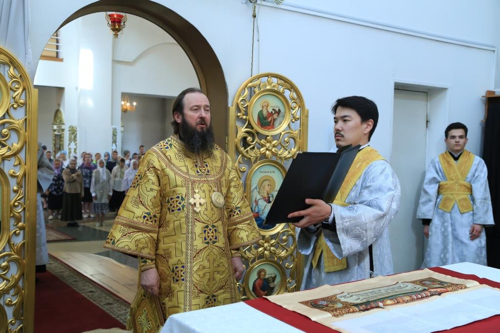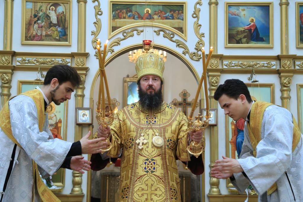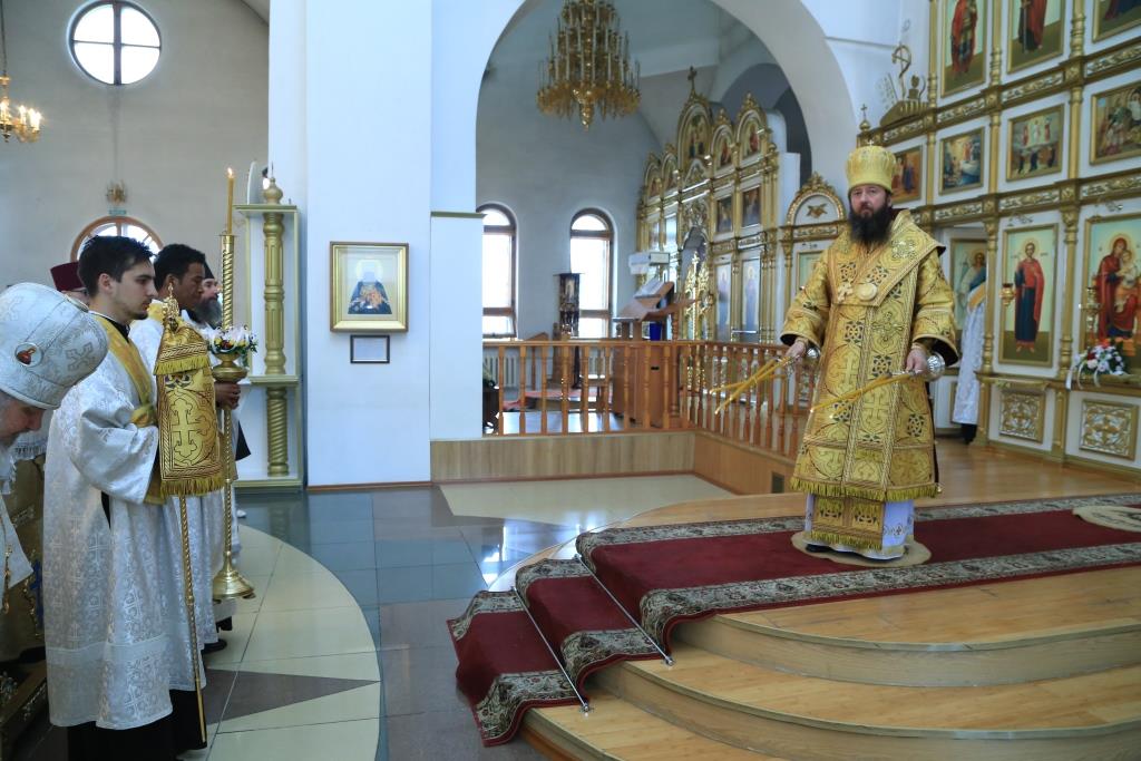 Епископ Усть-Каменогорский и Семипалатинский Амфилохий совершил Божественную Литургию по чину святителя Иоанна Златоуста в Андреевском кафедральном соборе столицы Прииртышья. Его Преосвященству сослужили: духовник епархии архимандрит Спиридон (Теплухин), ключарь Андреевского собора иеромонах Никодим (Авдеев), заведующий епархиальной канцелярией иерей Константин Дьяков; протодиакон Георгий Засыпкин, иеродиакон Мефодий (Шевчук), иеродиакон Тимофей (Хитрич).