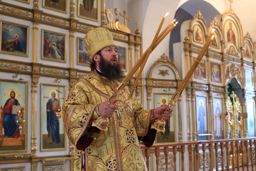 По окончании воскресного богослужения было совершено славление всем святых Русской земли, после чего епископ Амфилохий обратился к верующим со словами Архипастырской проповеди.