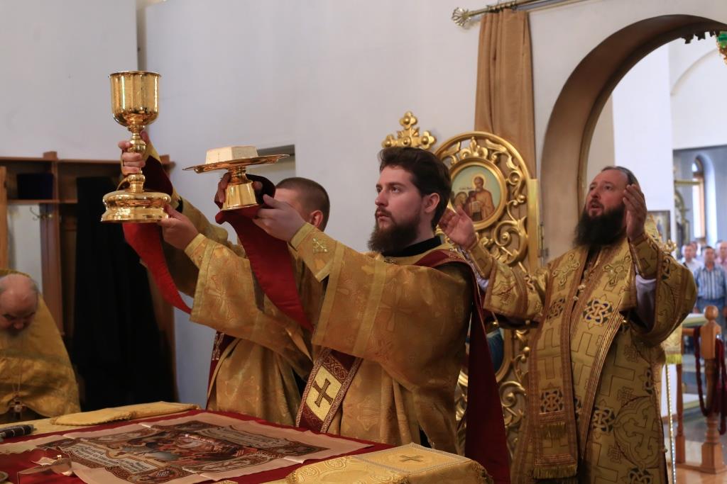 Песнопения Божественной Литургии исполнял хор кафедрального собора под управлением регента В. Федоровой.
