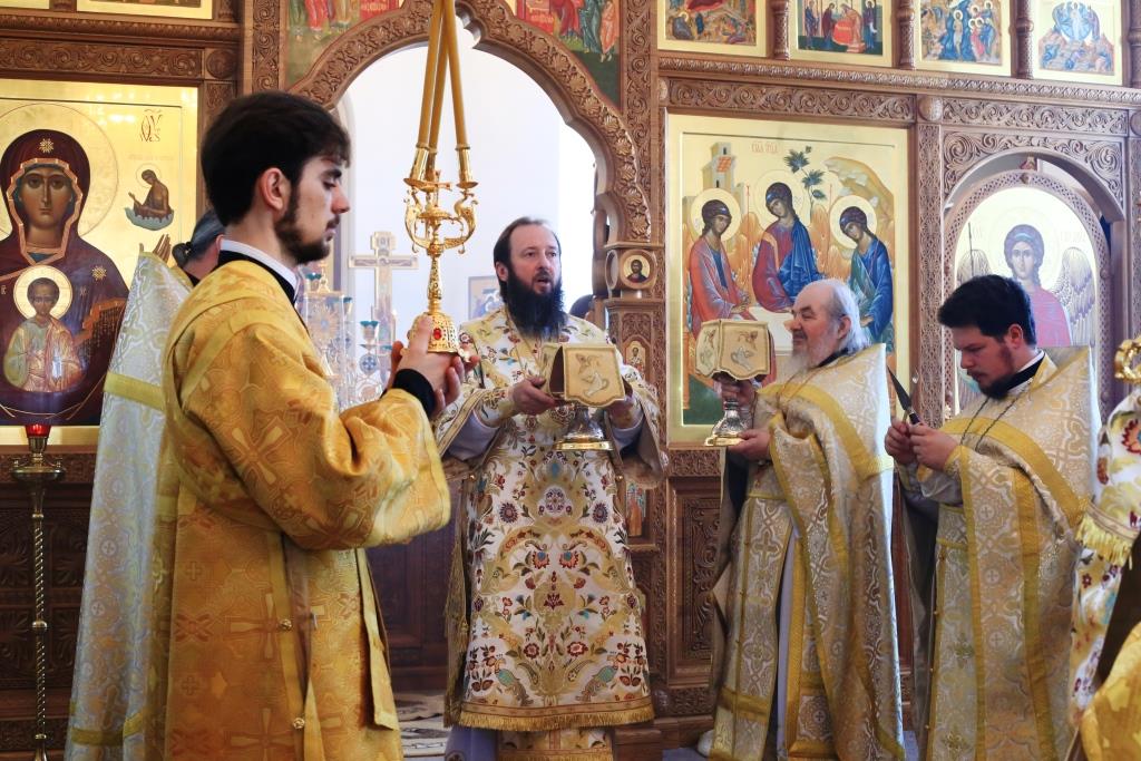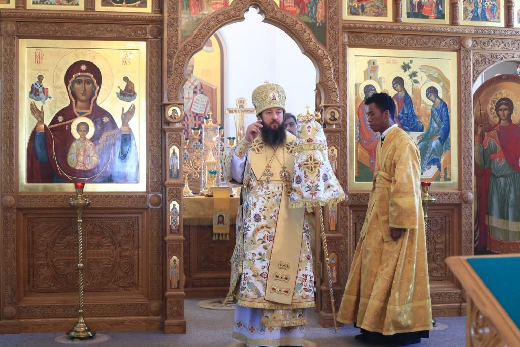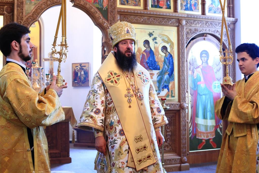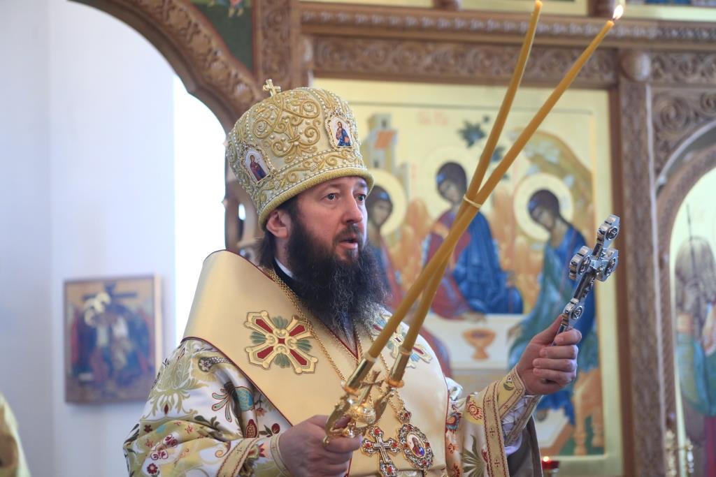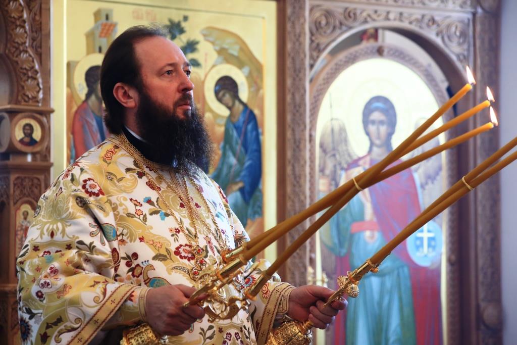 В праздничный день Архипастырю сослужили: духовник епархии архимандрит Спиридон (Теплухин), ключарь Андреевского собора иеромонах Никодим (Авдеев), протодиакон Георгий Засыпкин, иеродиакон Тимофей (Хитрич).