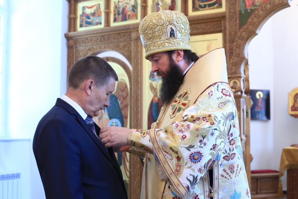 В завершение проповеди Преосвященнейший Владыка преподал всем молящимся Божие благословение и пожелал мира и спасения души. Слова особого архипастырского поздравления прозвучали в адрес руководителя юридического епархиального отдела Львова В.Г., отмечающего 60-летие со дня рождения. Владыка пожелал Владимиру Геннадьевичу здоровья, долголетия и помощи Божией в дальнейшем несении трудов на благо Святой Церкви.